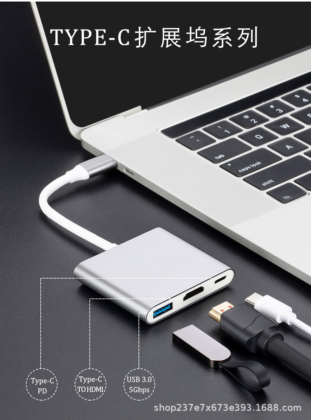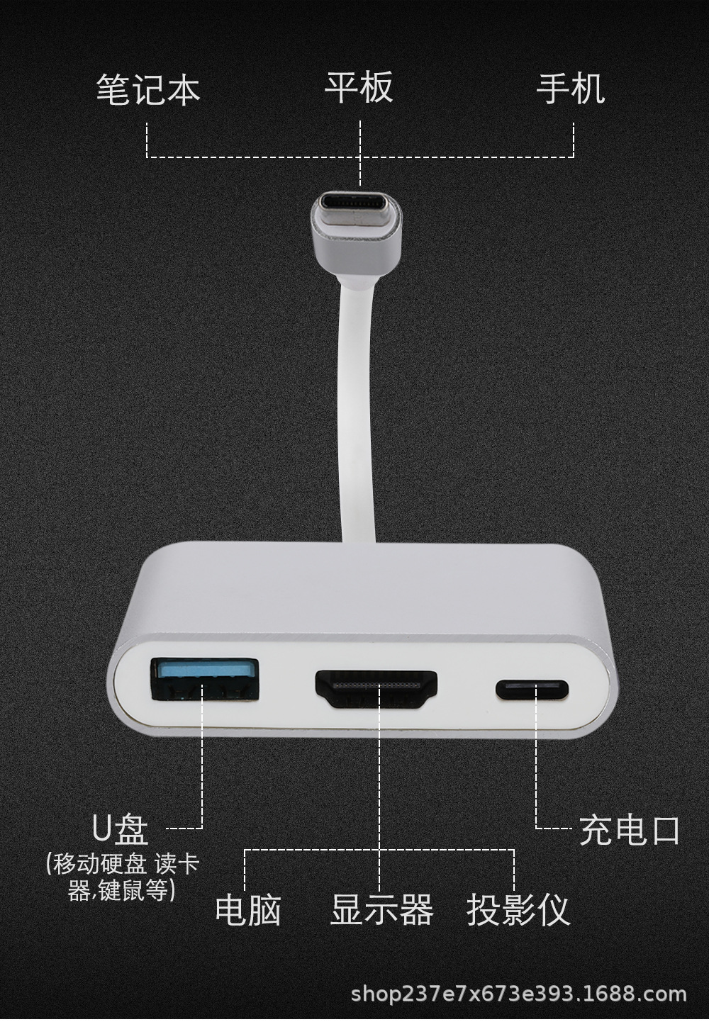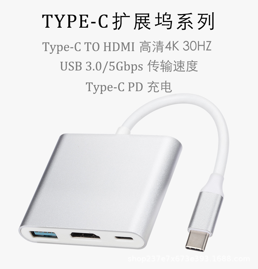 Type-C до HDMI три-в-одном док-станция 4K для проекции экрана ноутбука и мобильного телефона