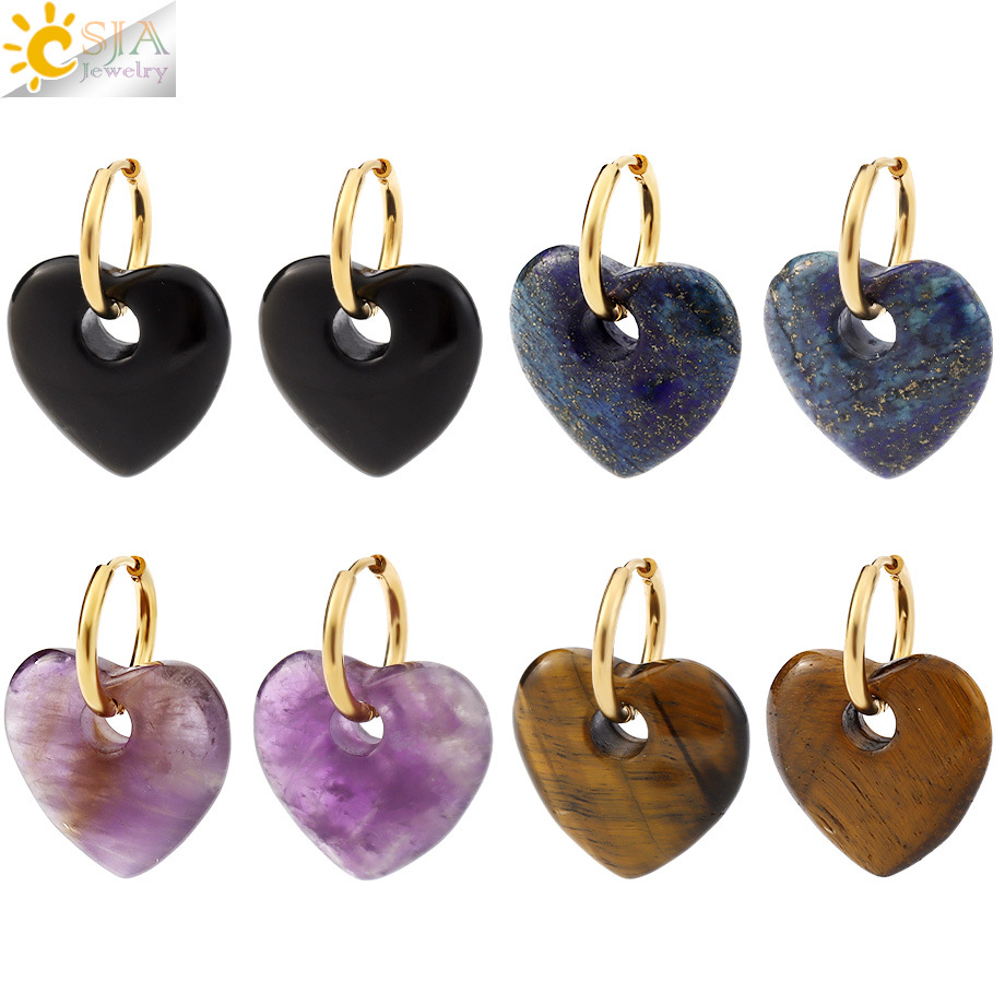 Серьги в европейском и американском стиле с натуральным кристаллом в форме сердца, свежие, подвесные серьги для девушек