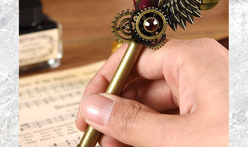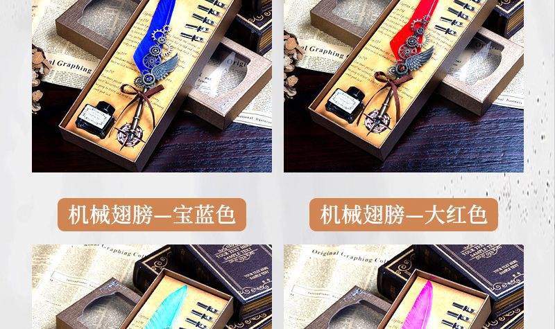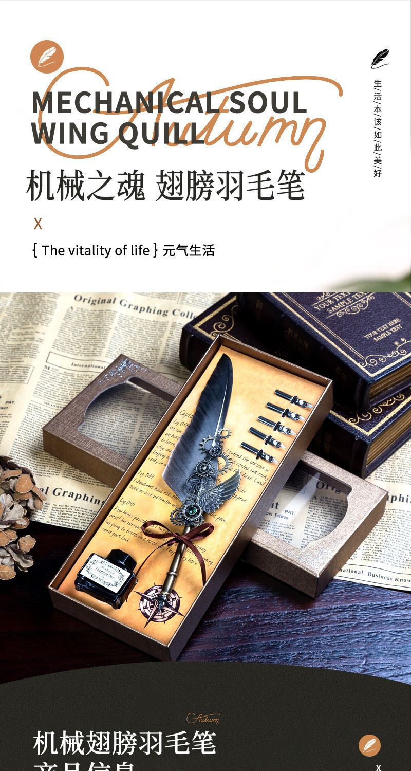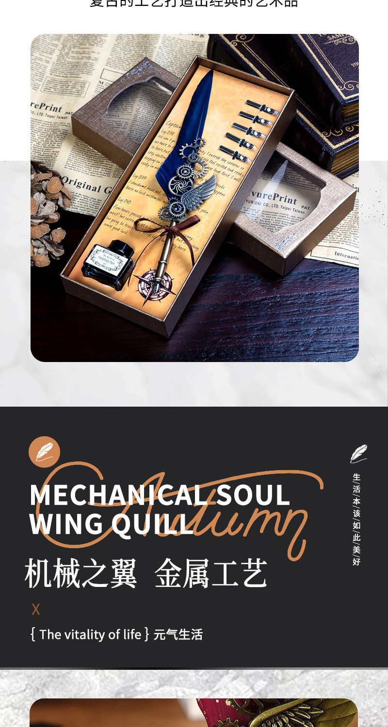 Синяя механическая ручка в стиле панк, крылья Гарри Поттера, перьевая ручка, подарочная ручка, перо, канцелярский набор