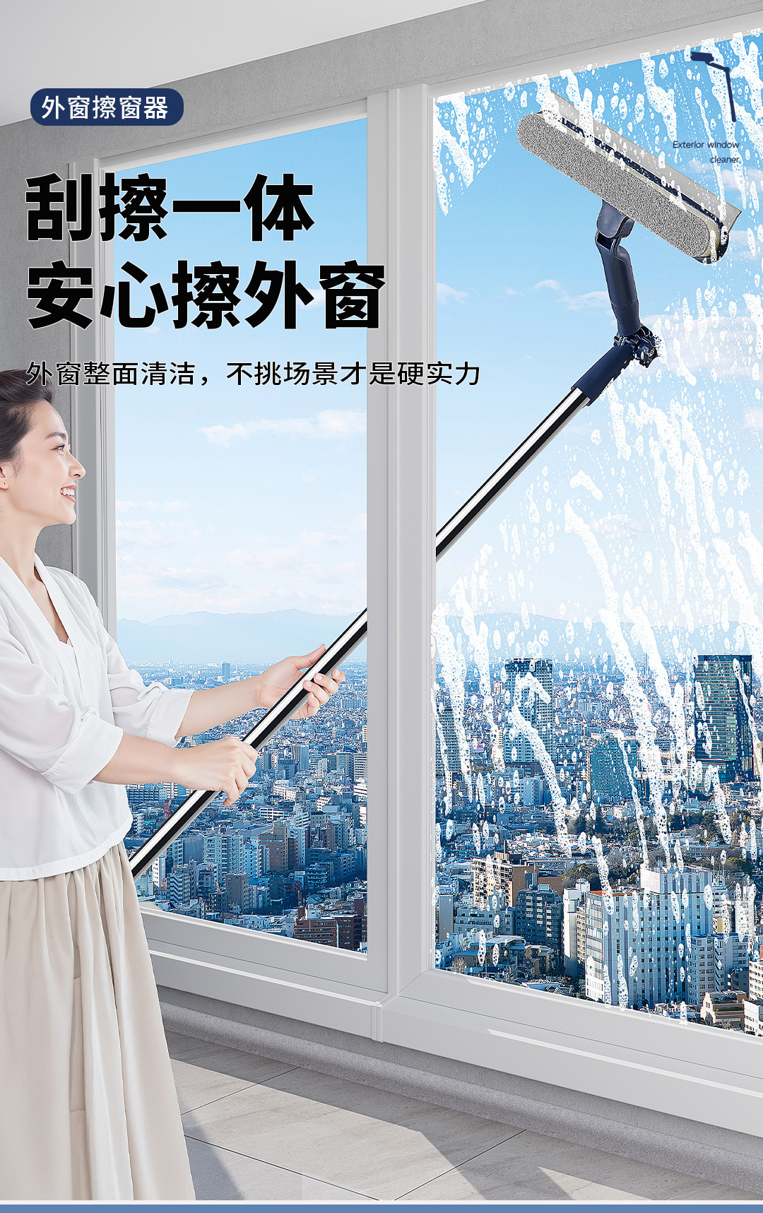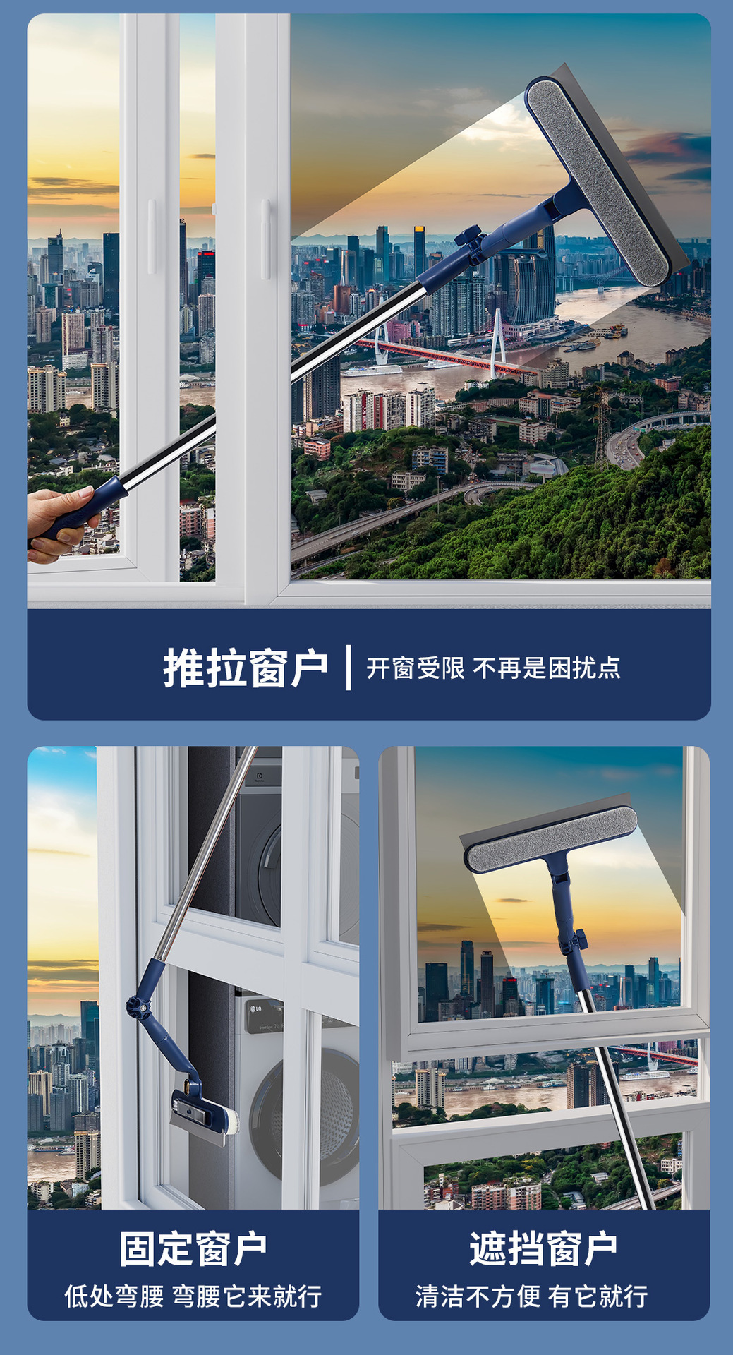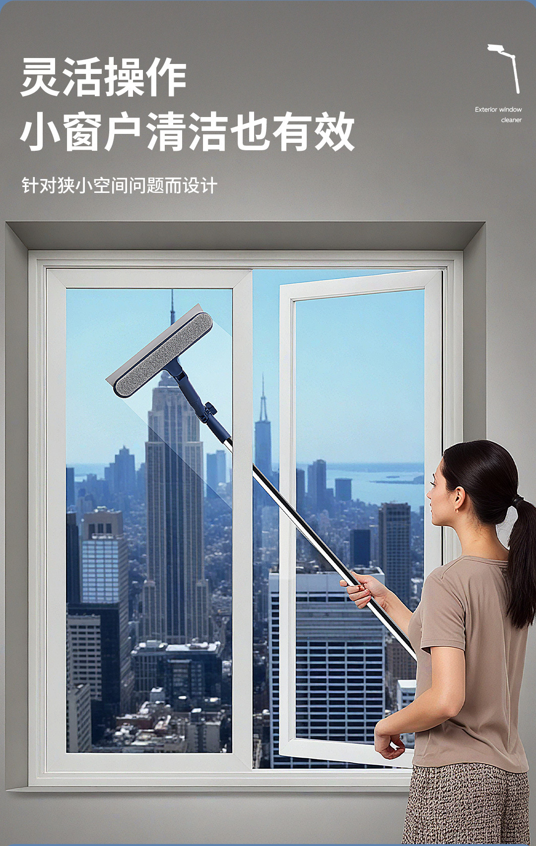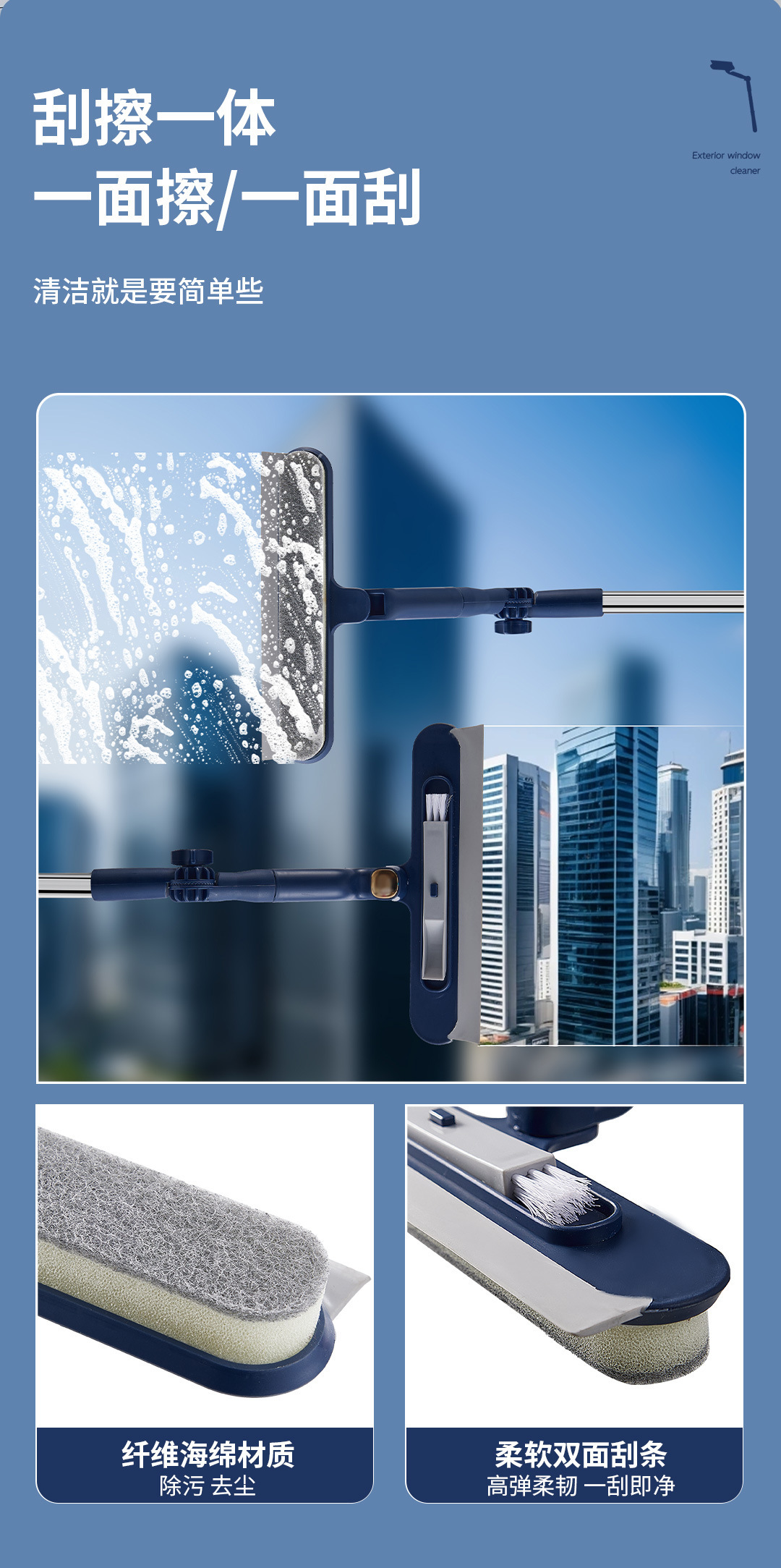Удлиненная ручка двустороннего инструмента для чистки стекол для домашнего использования, очистка внешних окон высотных зданий, специализированный инструмент для чистки высотных зданий