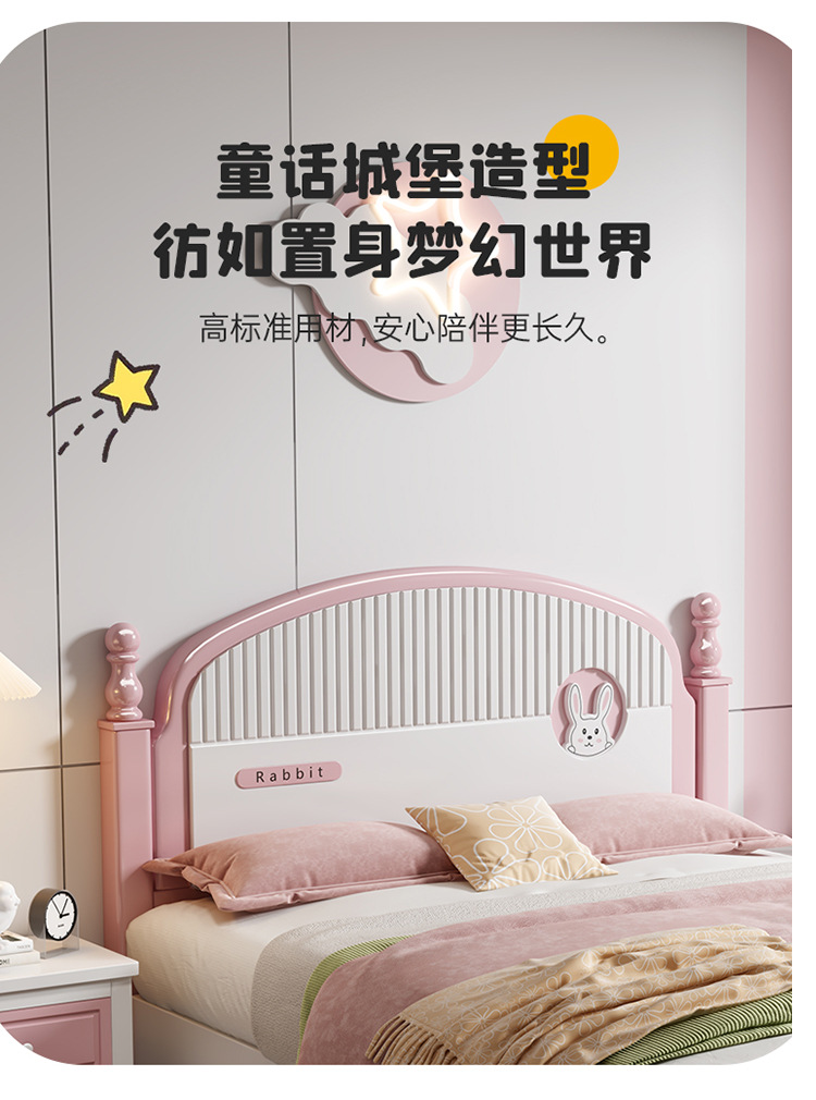 Детская кровать для девочки, розовая принцесса 1.35м, подростковая кровать