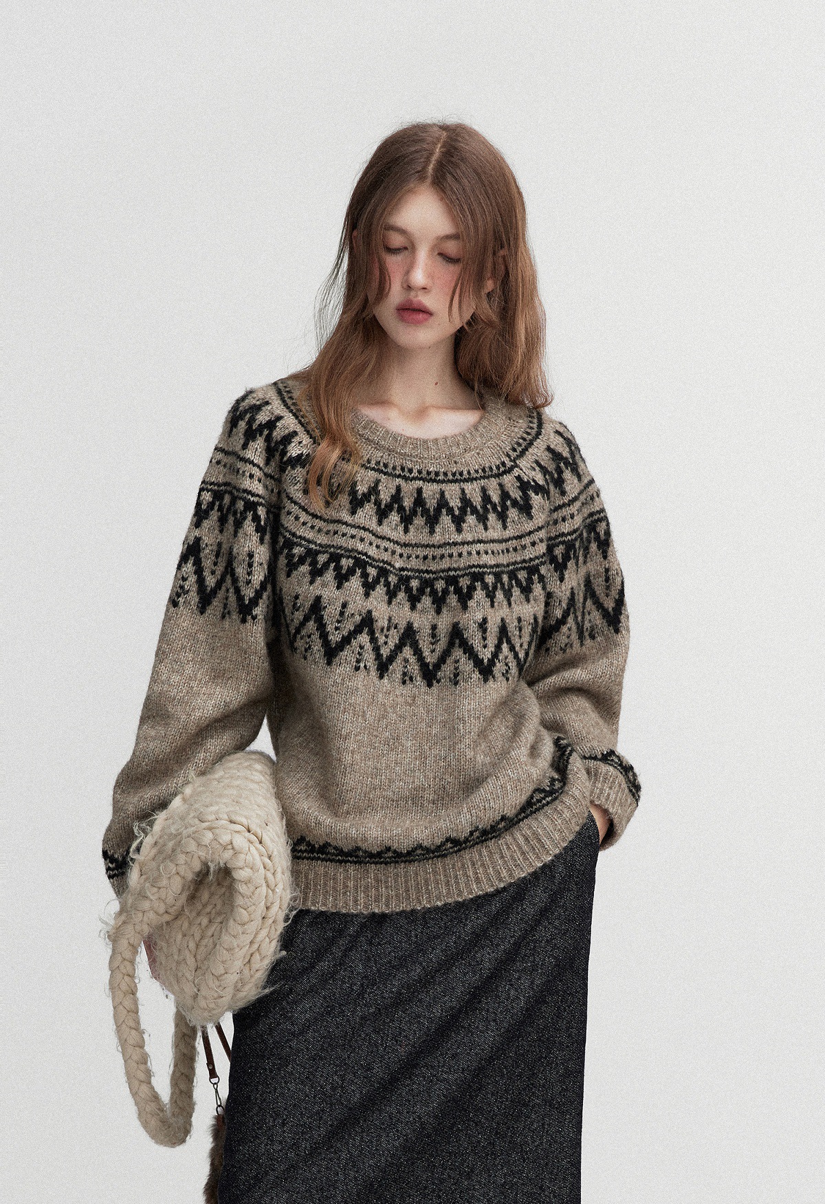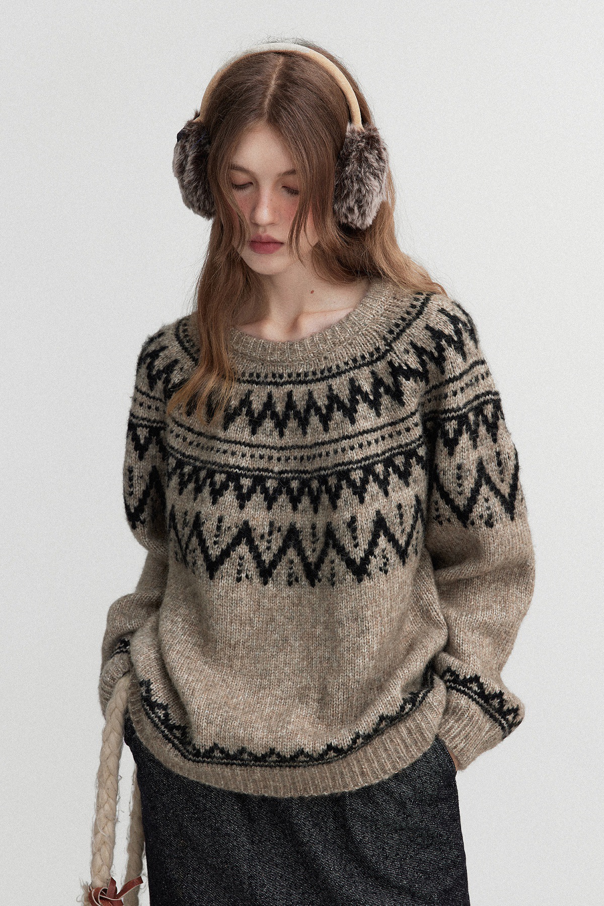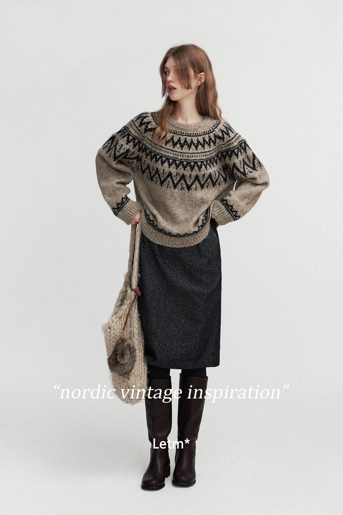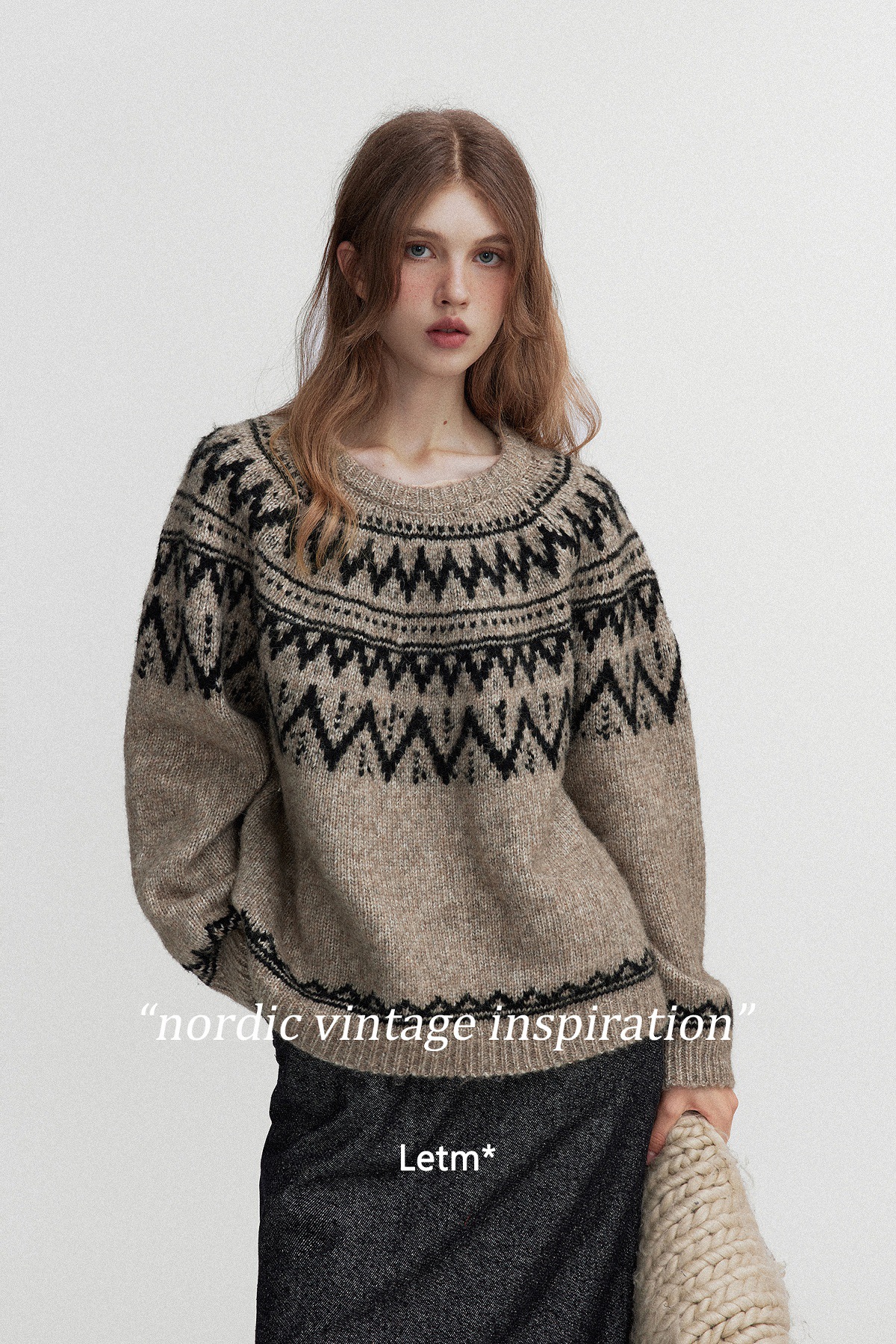 Letm "На Исландии идет снег" ретро свитер из альпаки с геометрическим узором, круглый вырез, для женщин