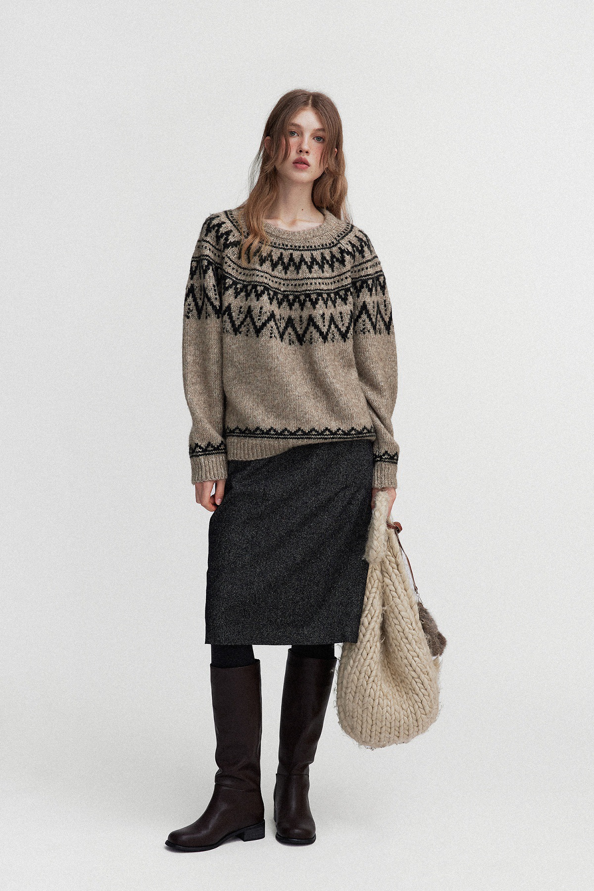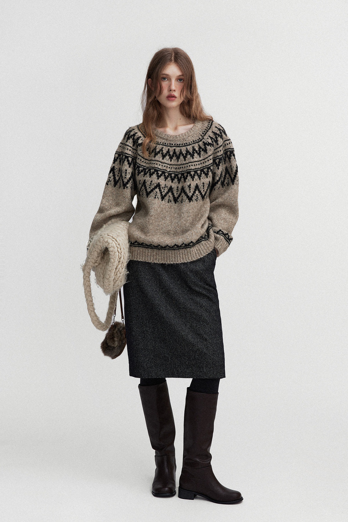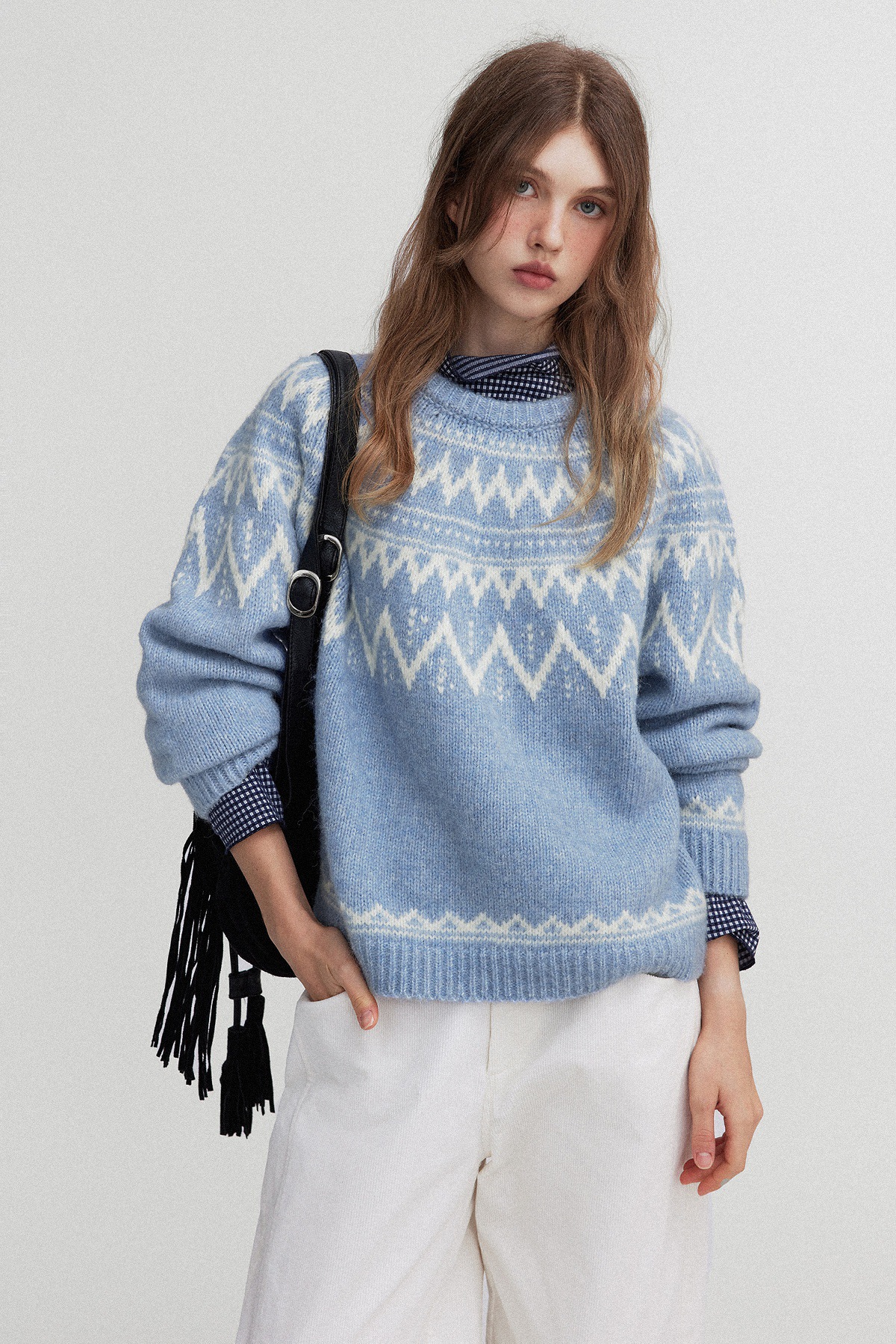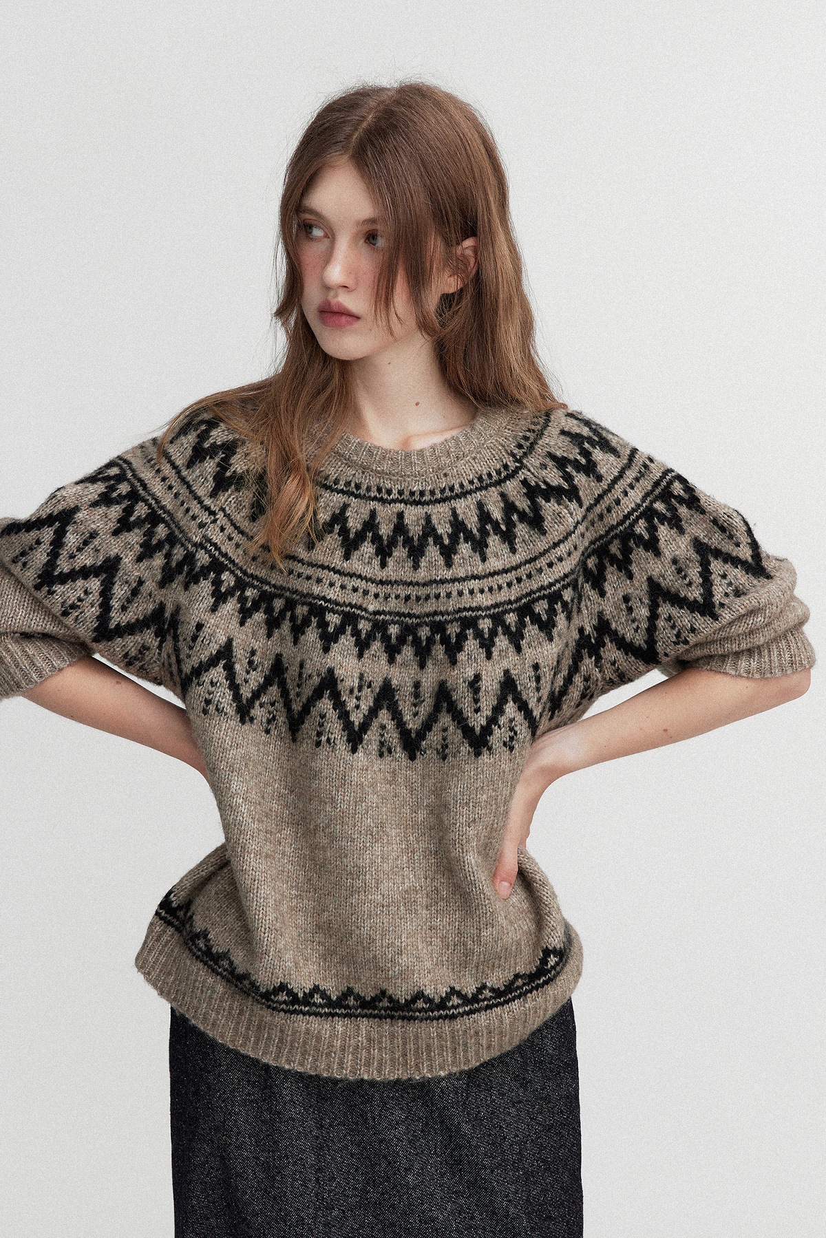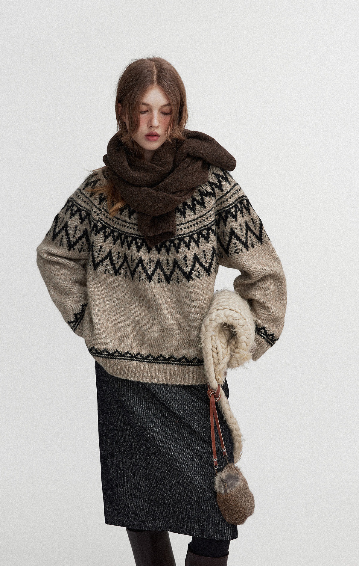 Letm "На Исландии идет снег" ретро свитер из альпаки с геометрическим узором, круглый вырез, для женщин