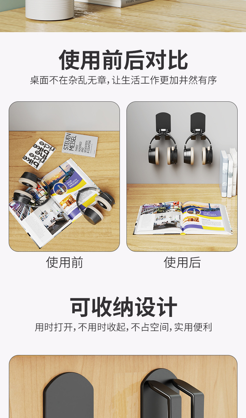Новый держатель для наушников без сверления, двухвостый крючок для хранения, настенное крепление для студенческого общежития