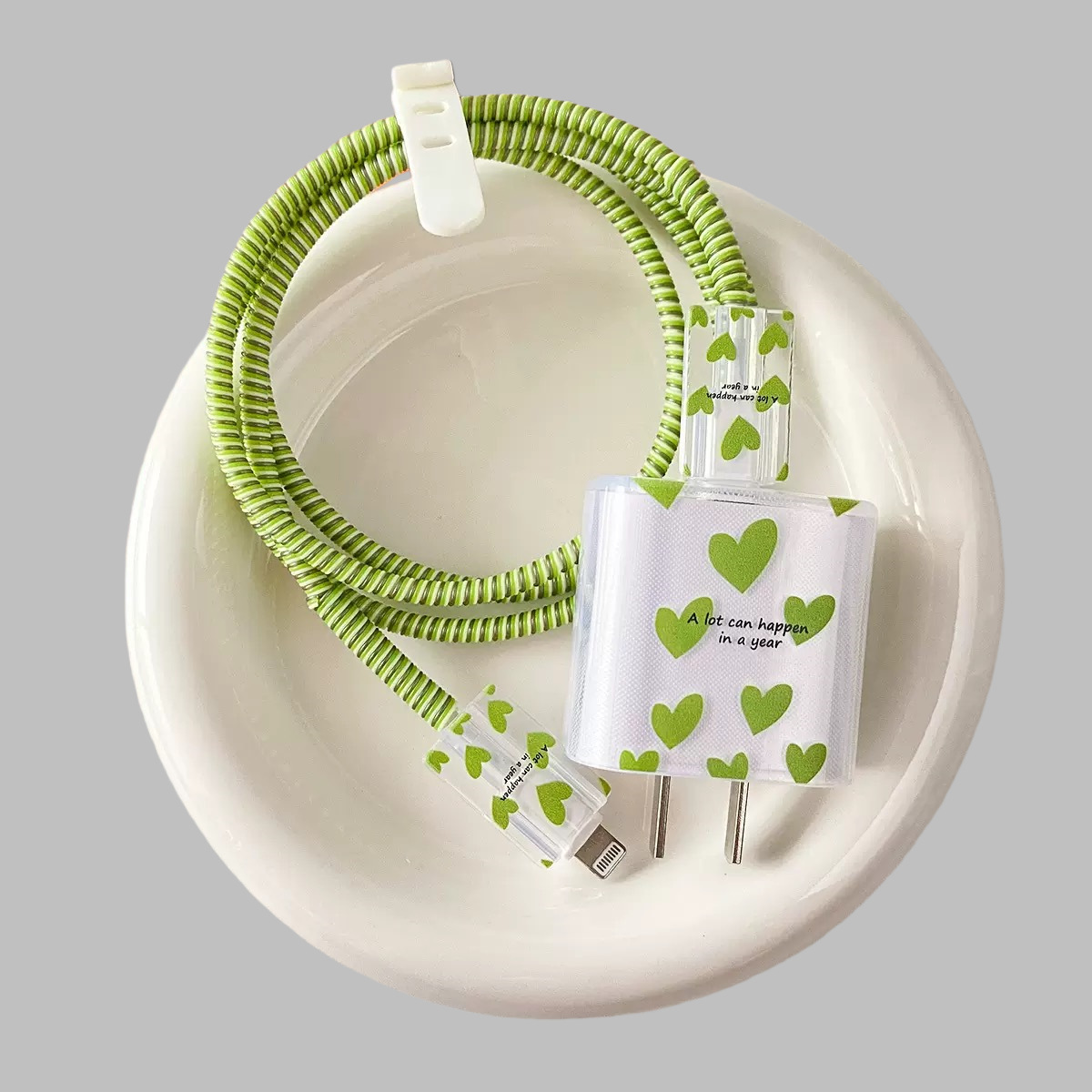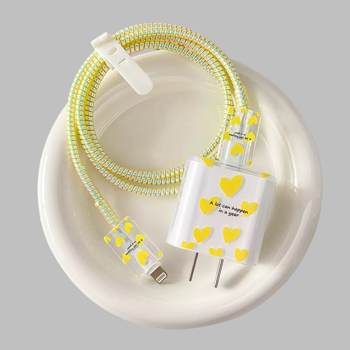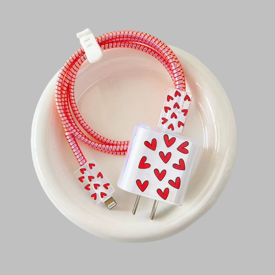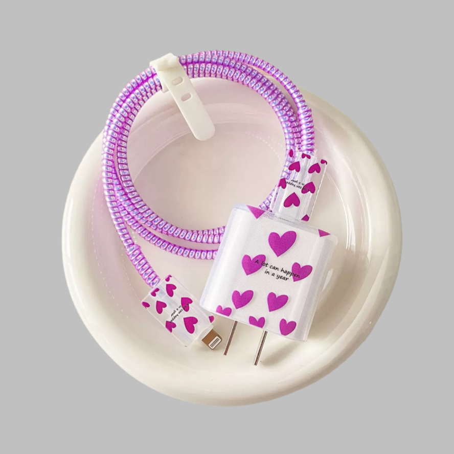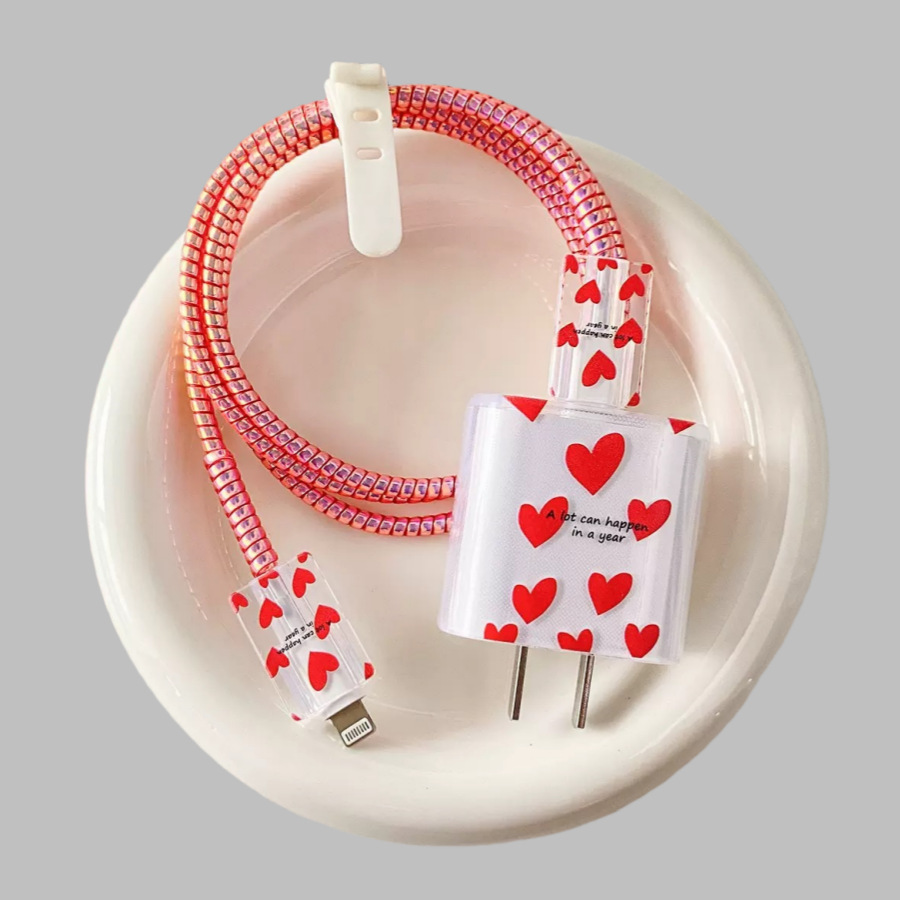 Накладка для зарядного устройства Apple 20W с цветным сердцем и надписями, защитная крышка для кабеля данных