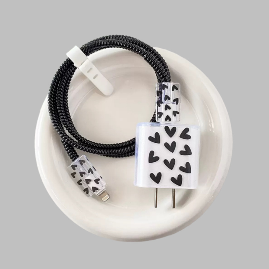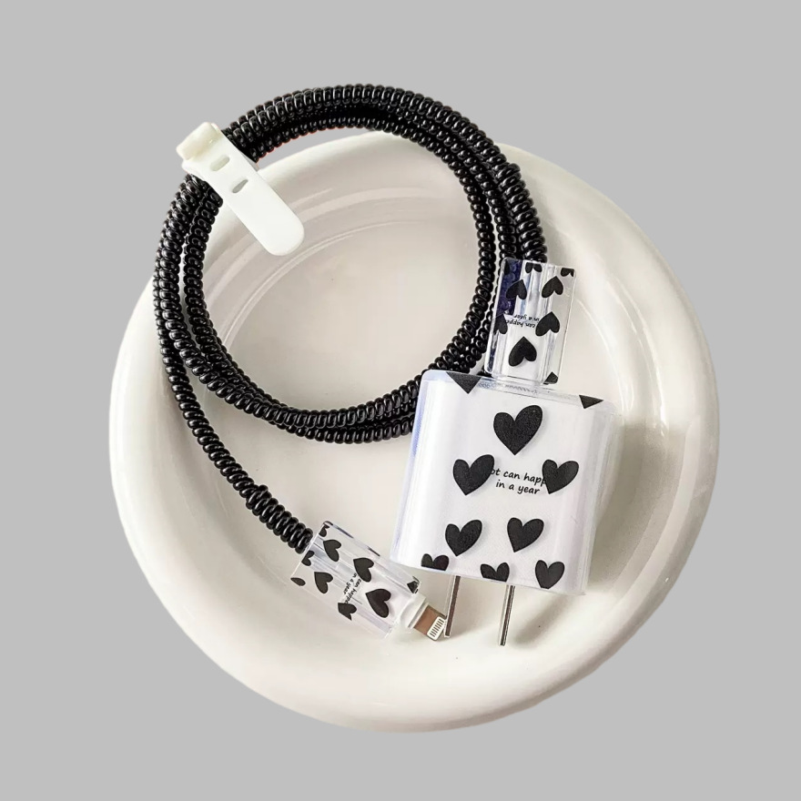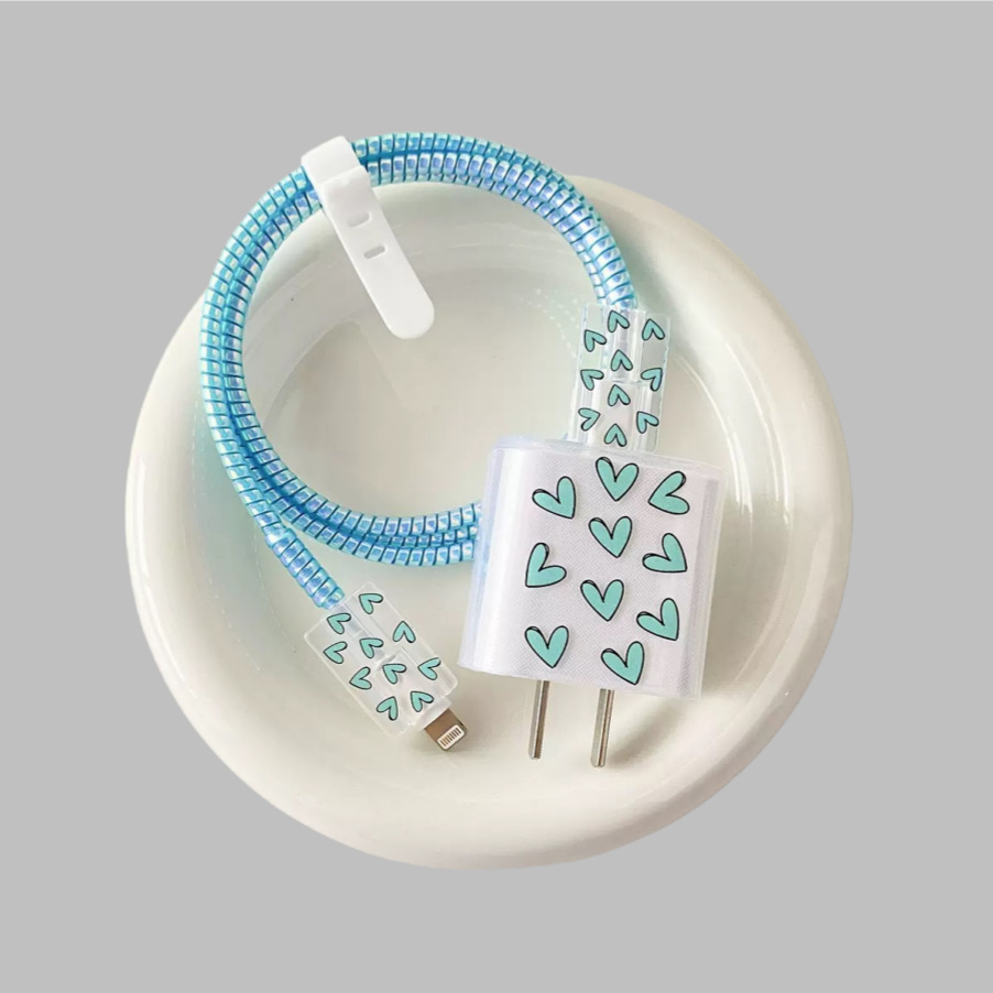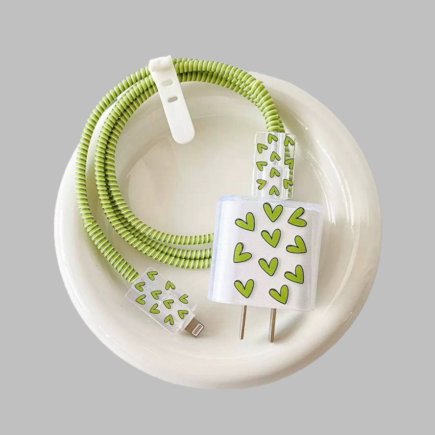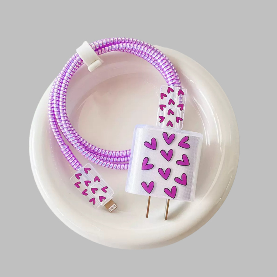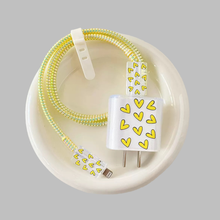 Накладка для зарядного устройства Apple 20W с цветным сердцем и надписями, защитная крышка для кабеля данных