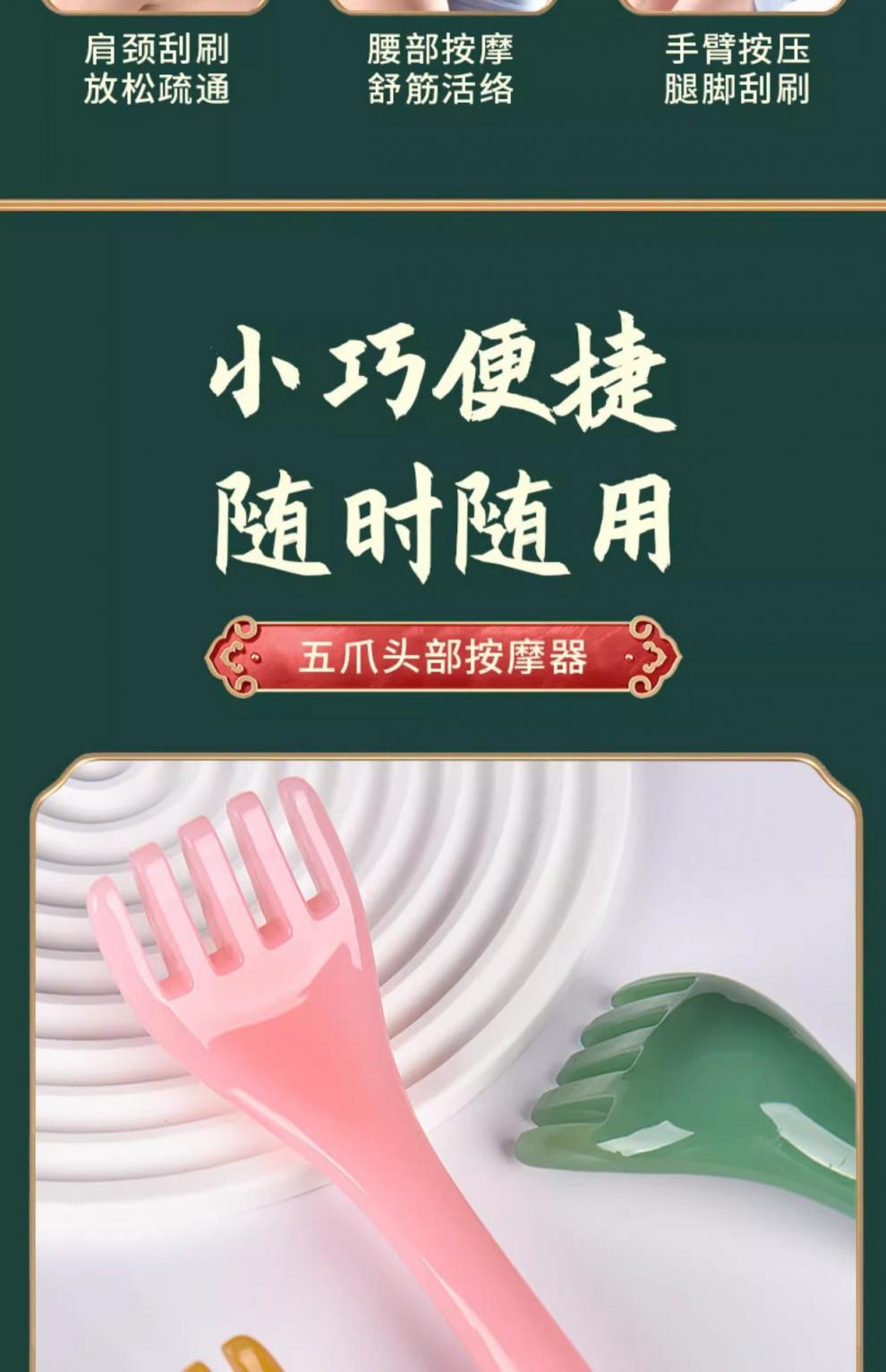 Массажер для головы с пятью когтями, массажная расческа для шеи и плеч, аккупунктурные палочки из смолы