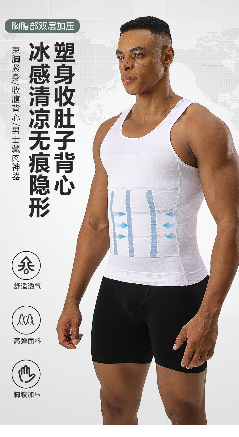 140D бесшовный мужской формирующий жилет оптом, формирование тела, контроль живота, формирование груди, слимминг, базовый топ, исключительно для кросс-бордерных продаж