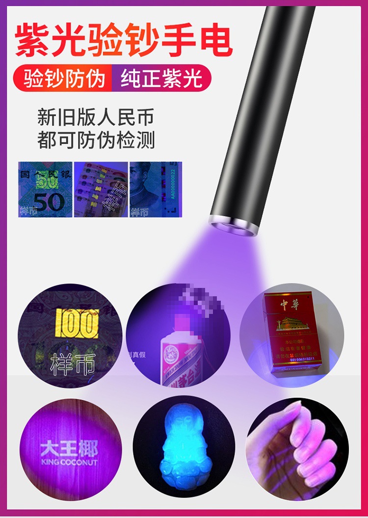 Лампа для детекции банкнот с фиолетовым светом, УФ мини-фонарик, детекционная ручка, маленькая плата, антифальсификационная лампа для китайских сигарет