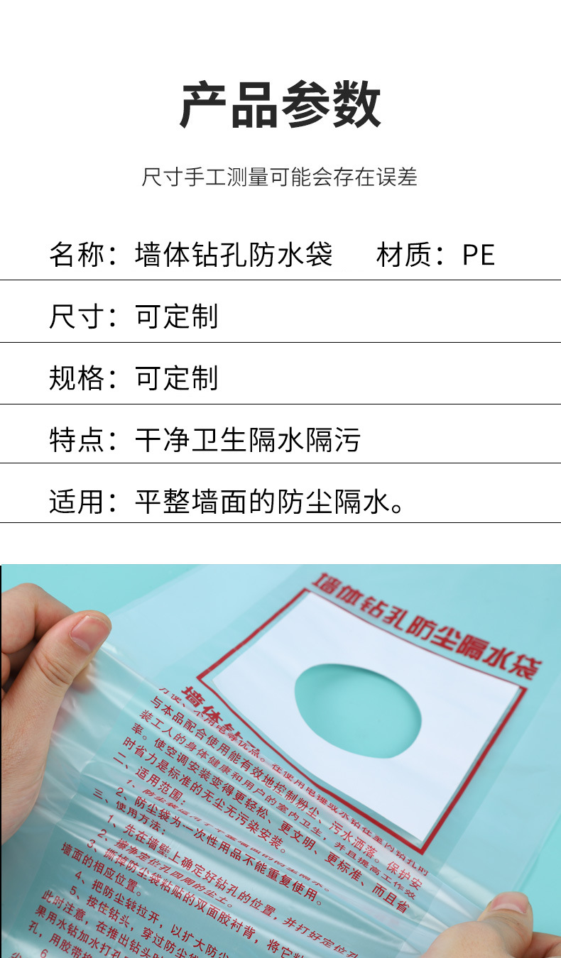 Мешок для пыли кондиционера, вытяжка, настенный котел, сантехническая труба, сверление стен, водяное сверло, водонепроницаемый мешок