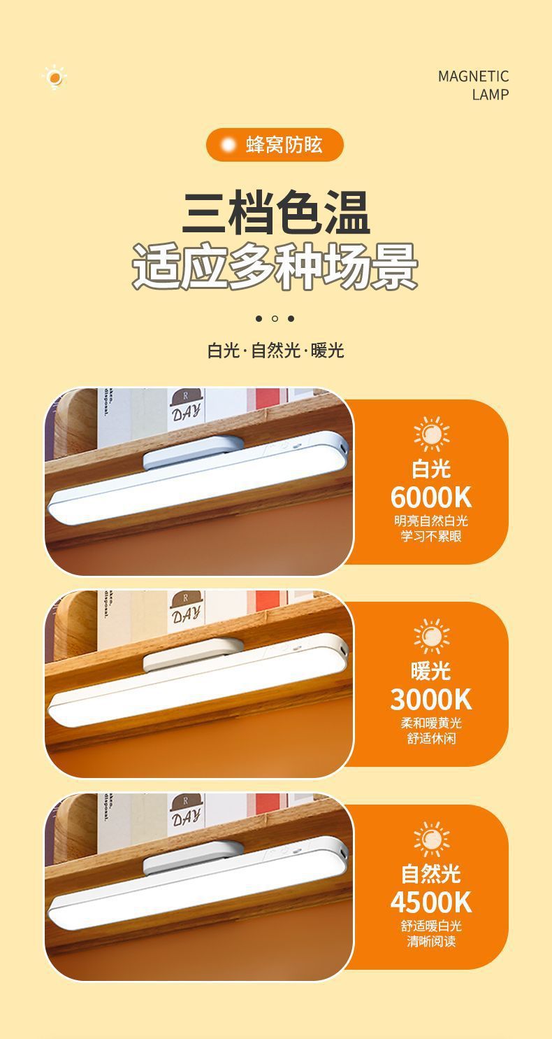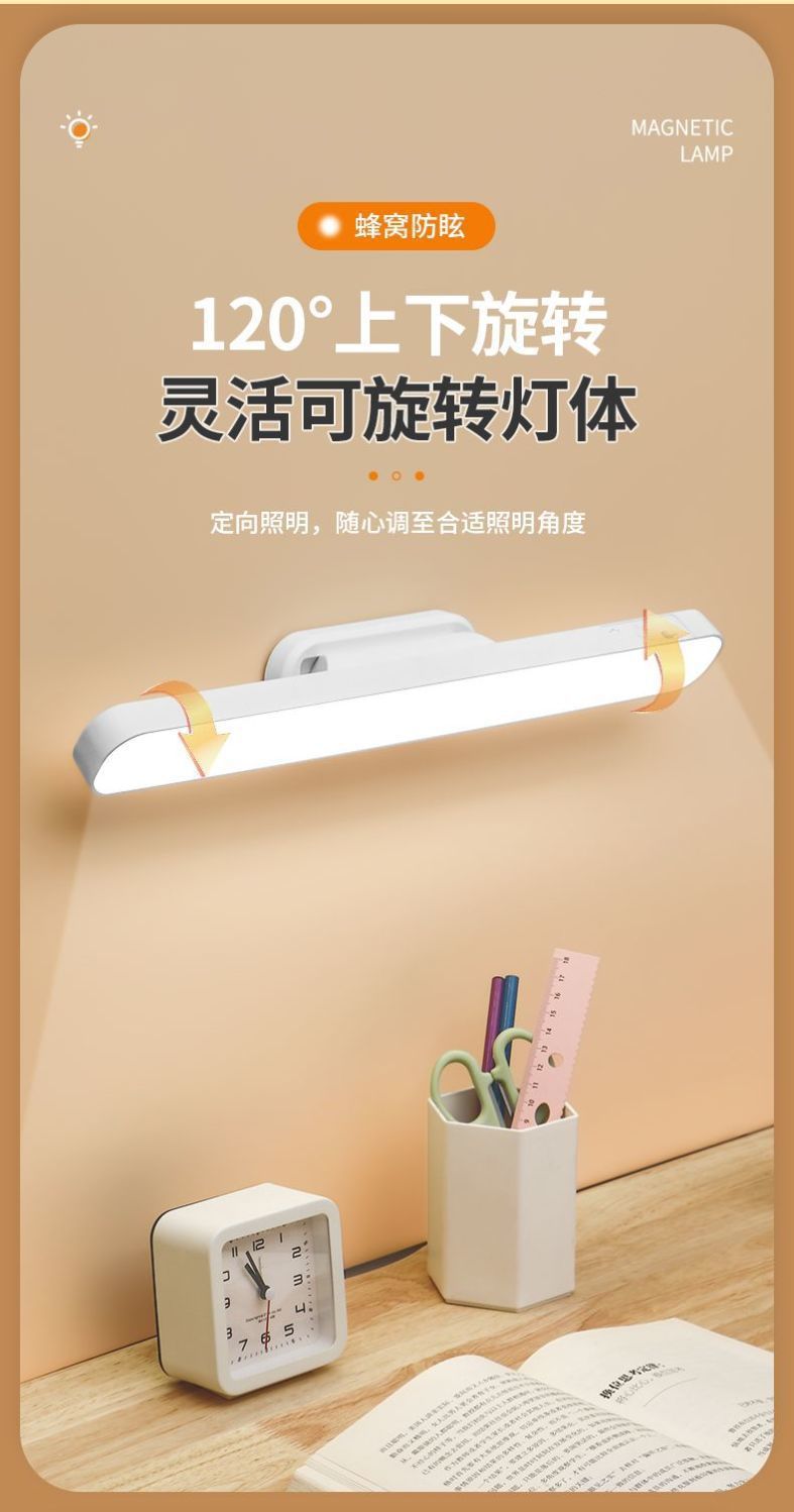 Настольная лампа для студентов с регулируемой яркостью, защита глаз, поворотная магнитная, светодиодная, для учебы и чтения в общежитии