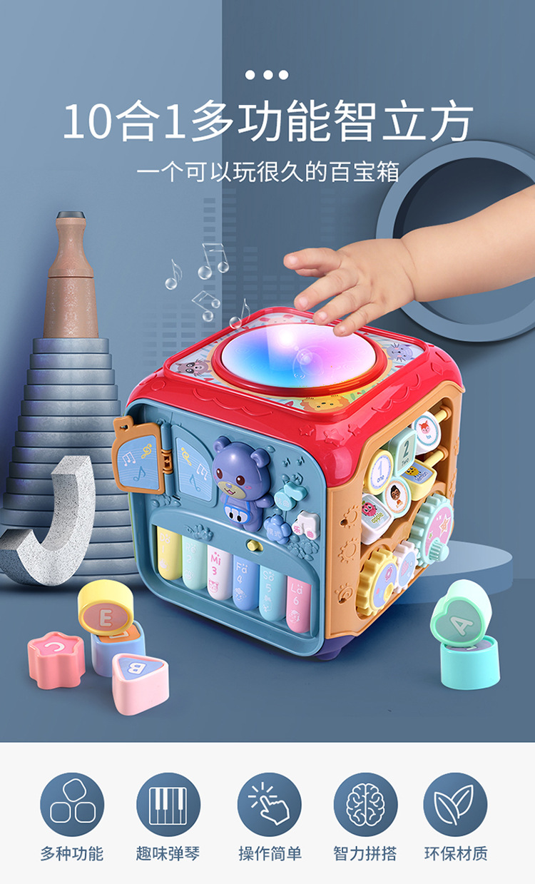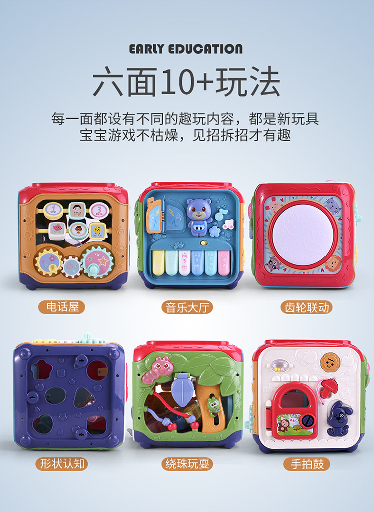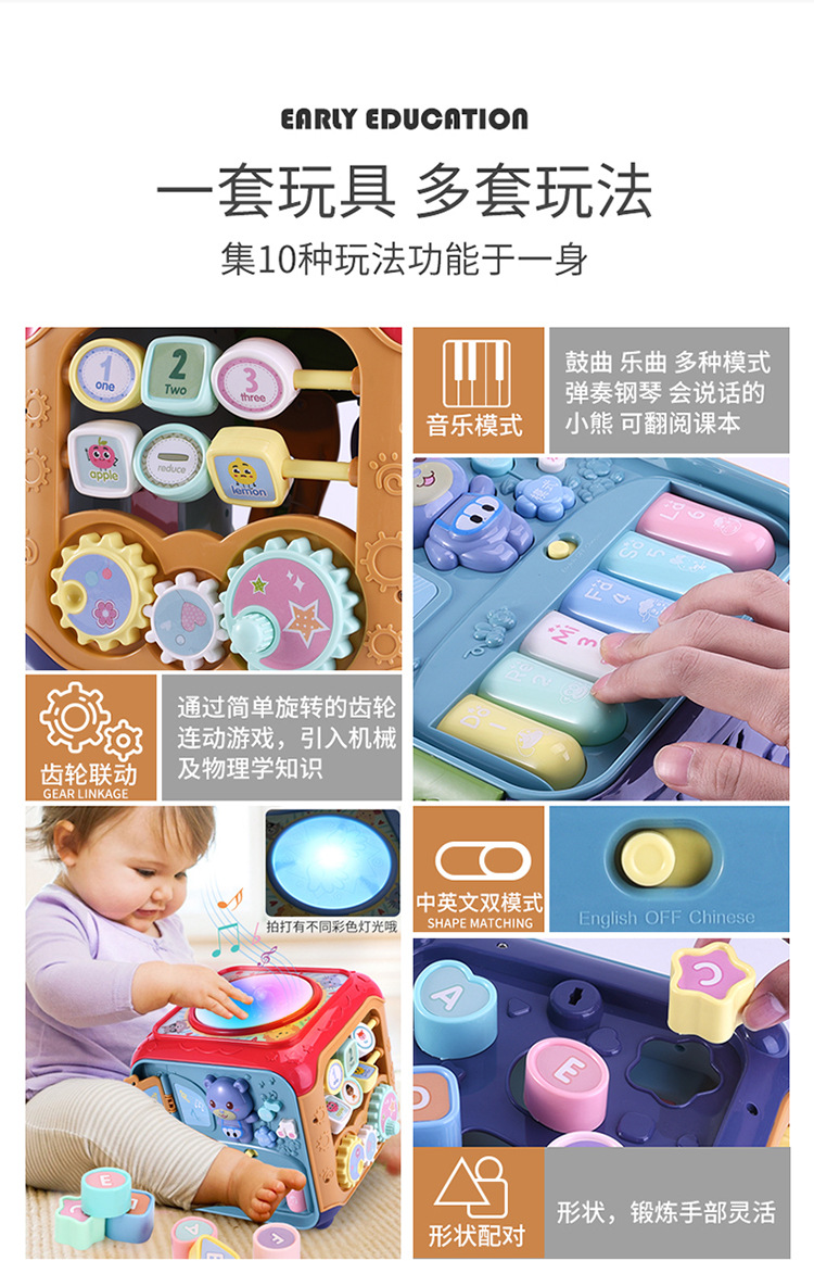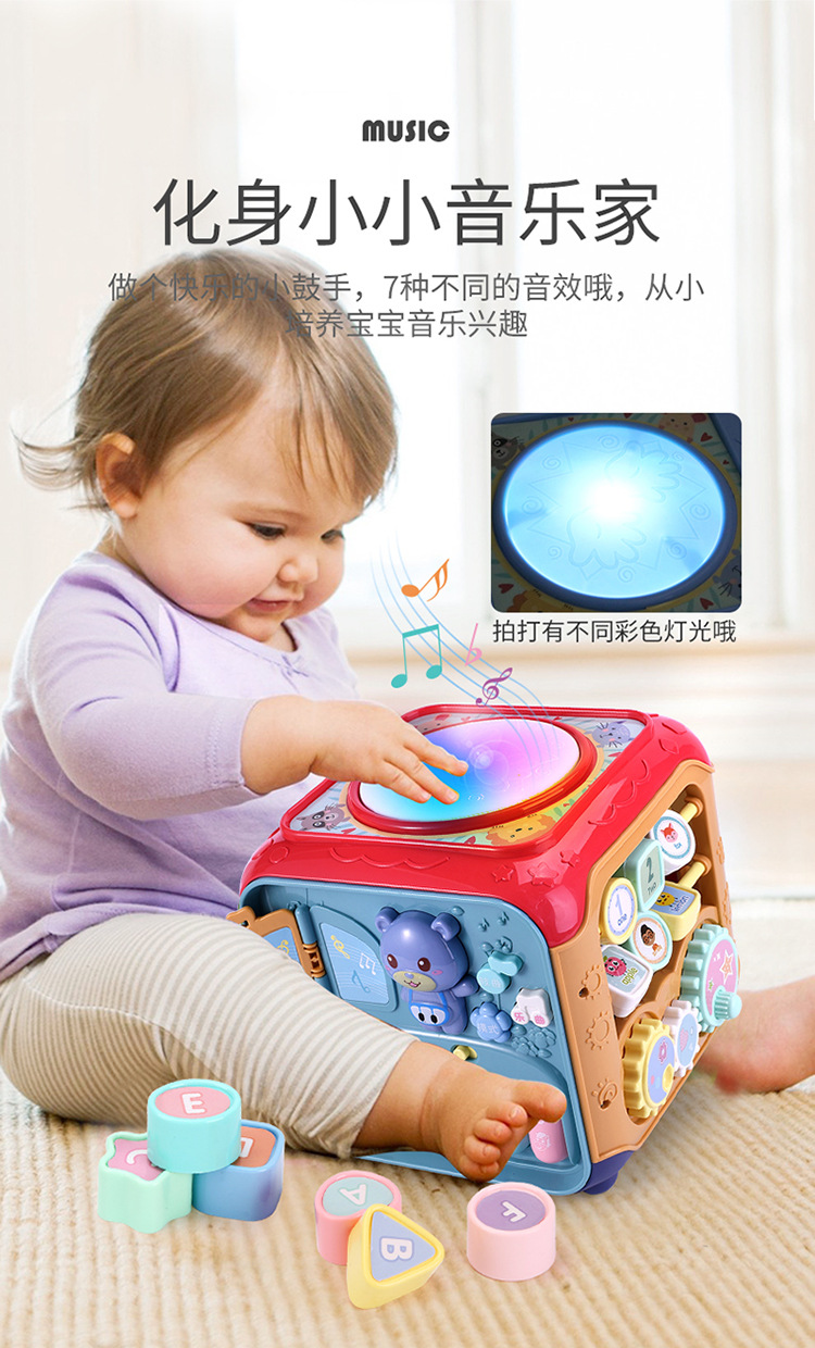 Большой музыкальный барабан для малышей, образовательный многофункциональный шестигранный барабан для детей 0-1 года