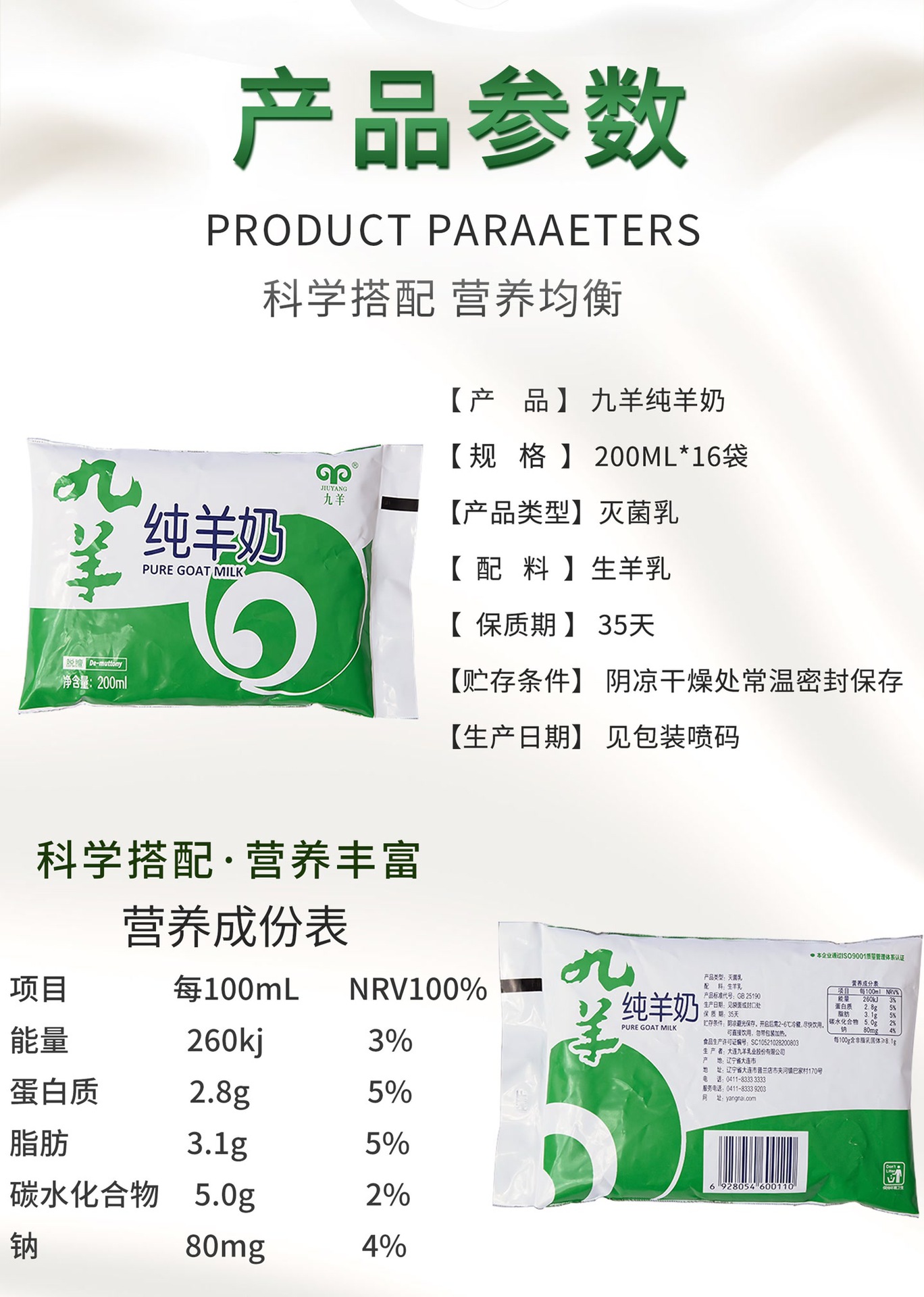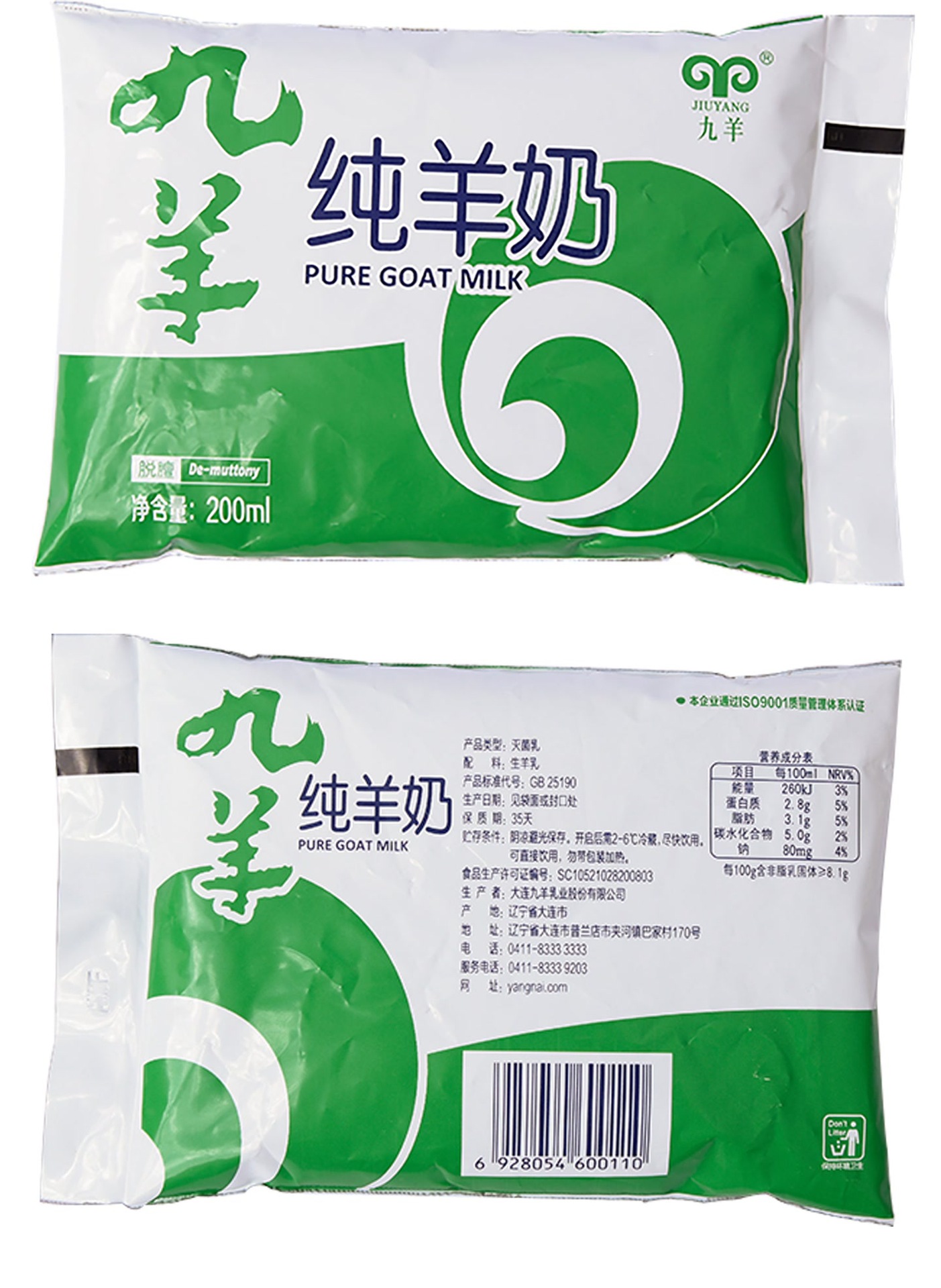 Jiuyang чистое козье молоко Baile пакетированное свежее козье молоко без запаха молоко для завтрака 12 пакетов при комнатной температуре