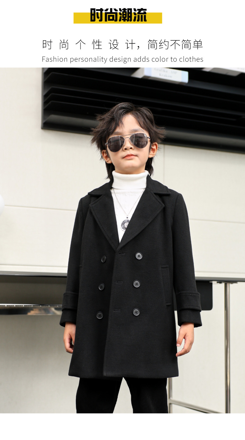 Новая осенняя и зимняя двубортная шершавая куртка для мальчиков, утолщенная, с отложным воротником, средней длины