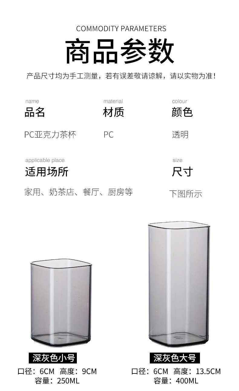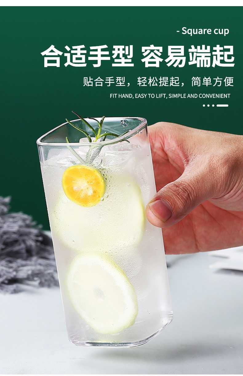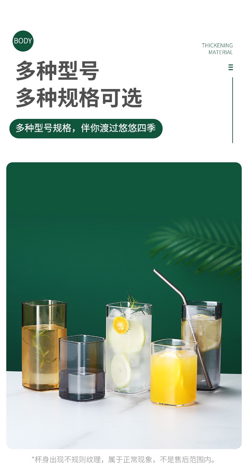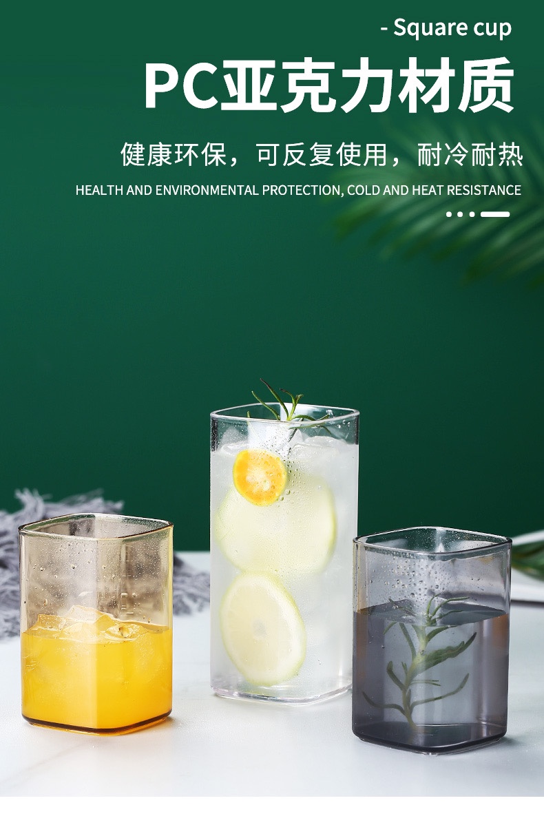 Акриловый стакан, стакан для полоскания рта, стакан для сока и чая, ударопрочный и термостойкий ресторанный стакан, цветной прозрачный квадратный стакан для молока