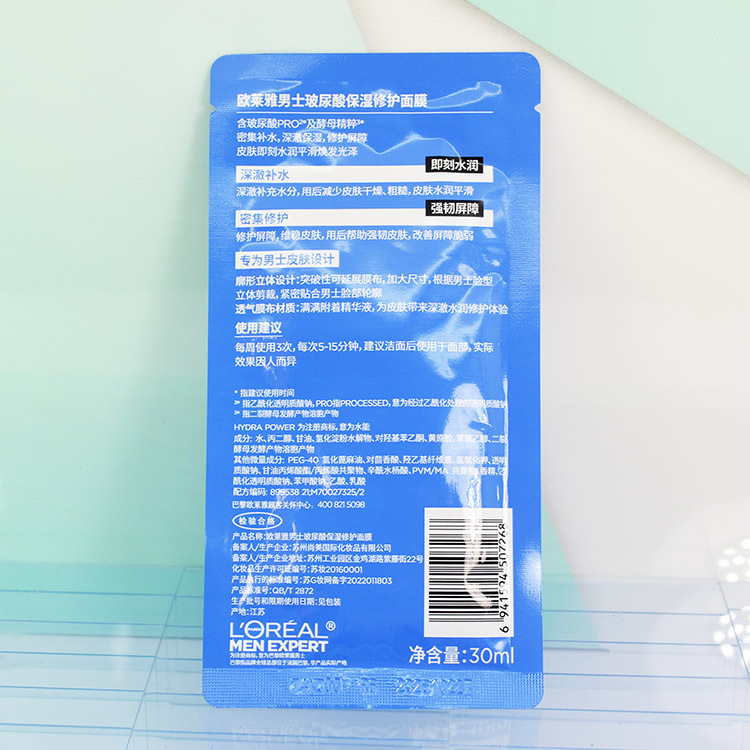 L'Oreal Мужская маска для лица Уход за кожей лица Гиалуроновая маска 30г Один кусок Оптовая продажа для парня