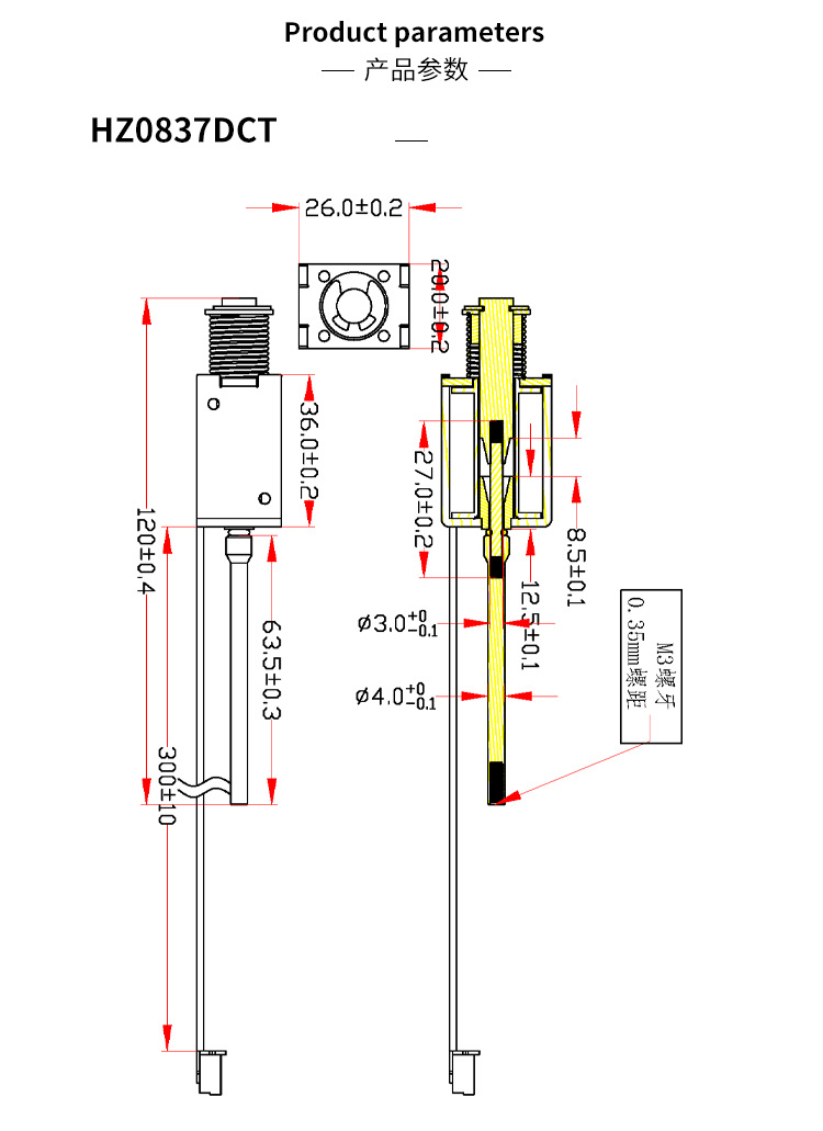 Электромагнит Hz0837Dct, 12V, электромагнитный выбрасыватель, электромагнитный толкатель включен