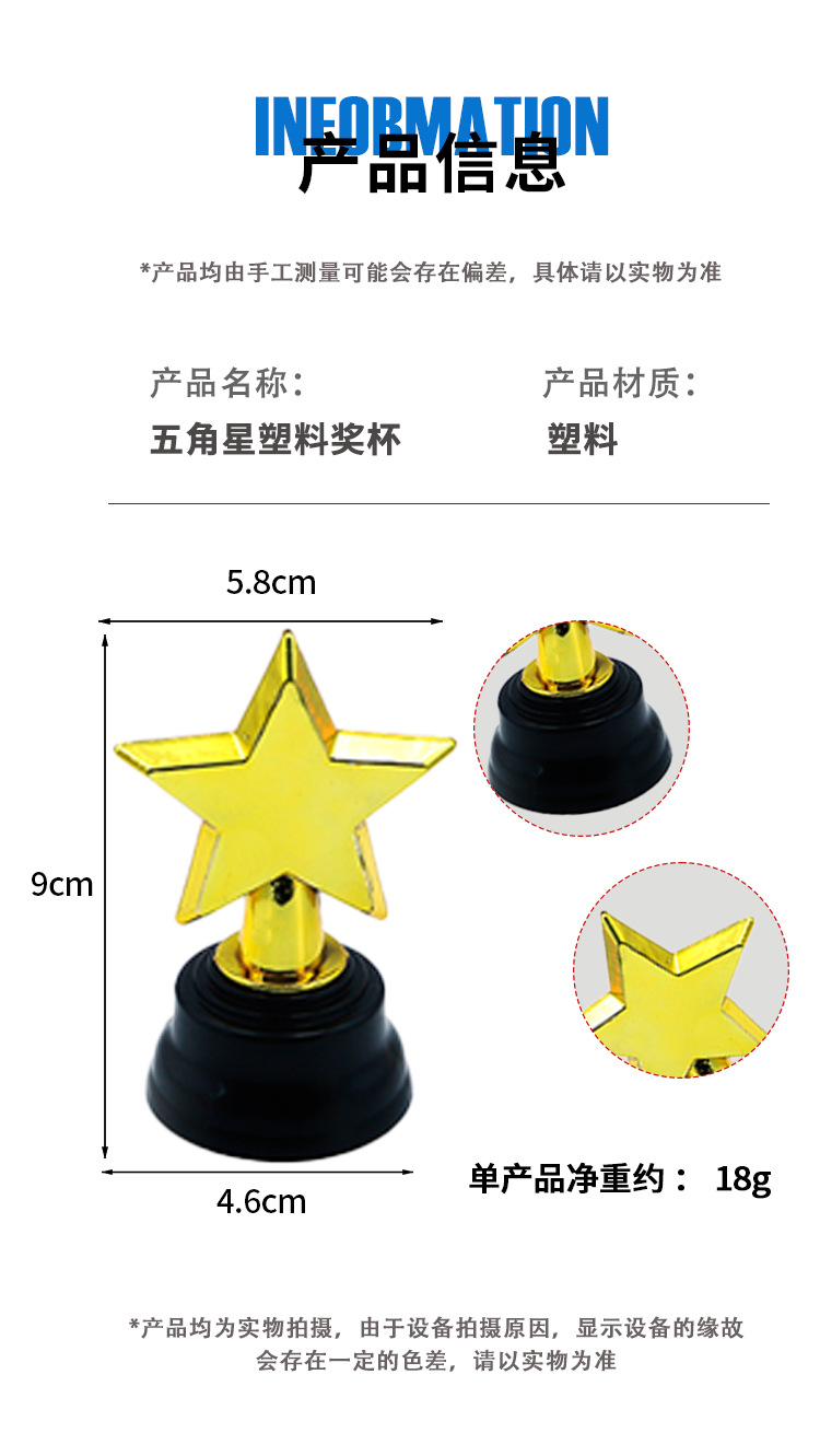 Трофей для детей в детском саду, маленький трофей в форме пятиконечной звезды, индивидуальная награда за танцевальный конкурс, креативный пластиковый трофей звезды