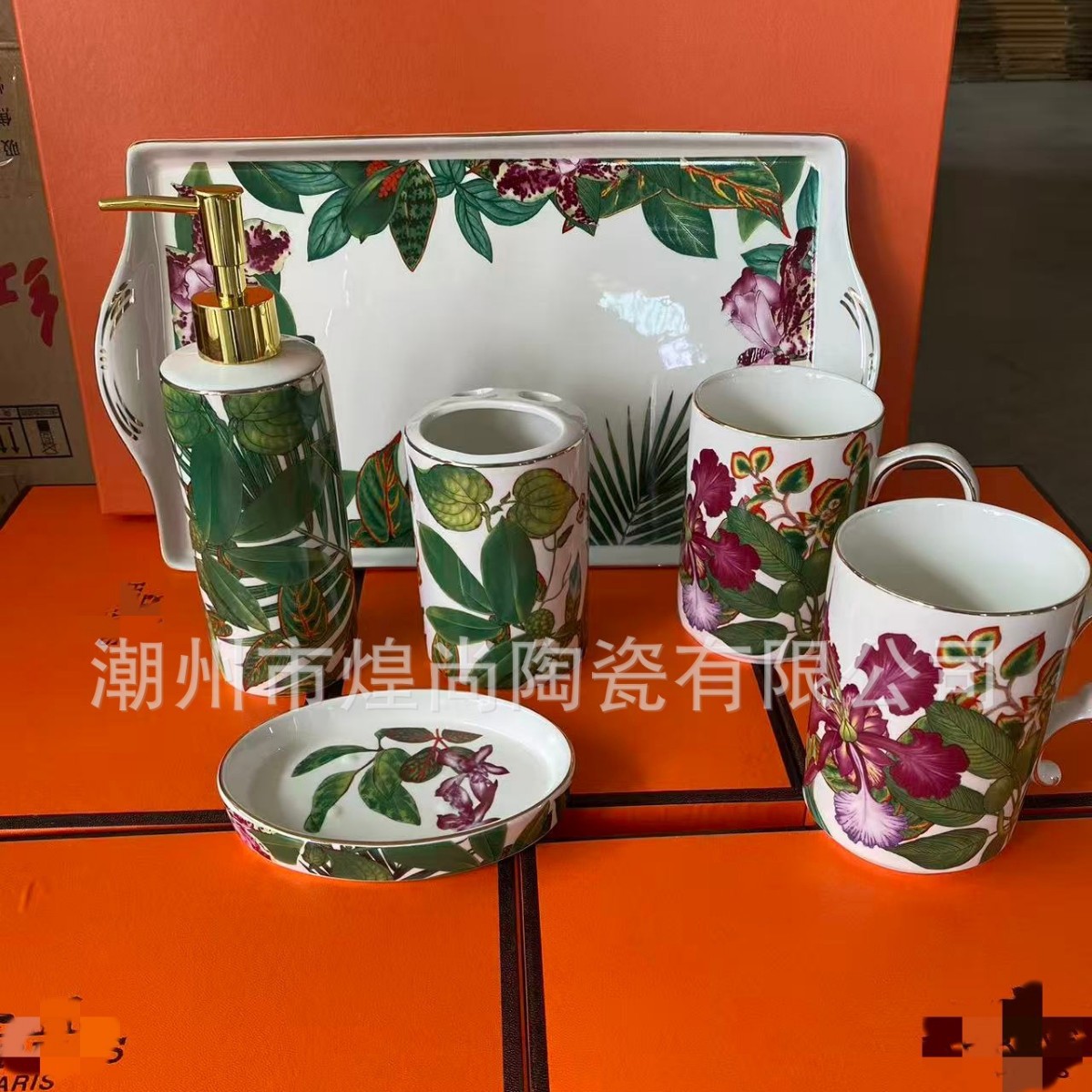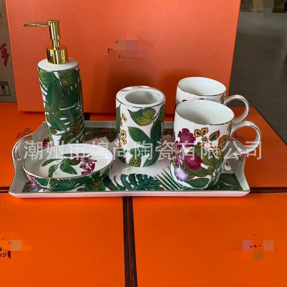 Европейский роскошный ретро тропический набор для ванной из шести предметов, фарфор, подарочная коробка