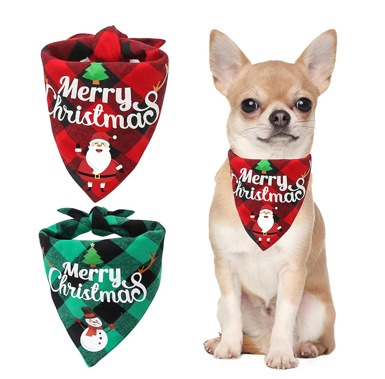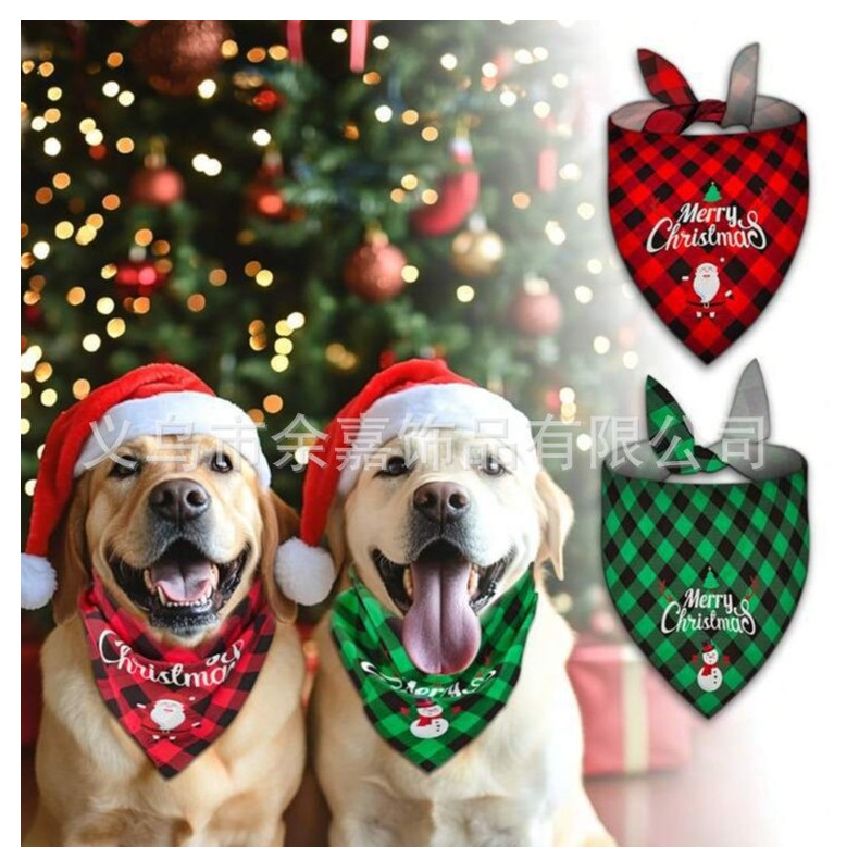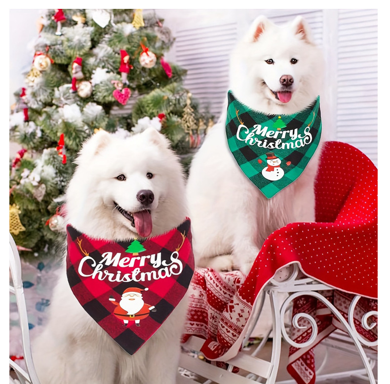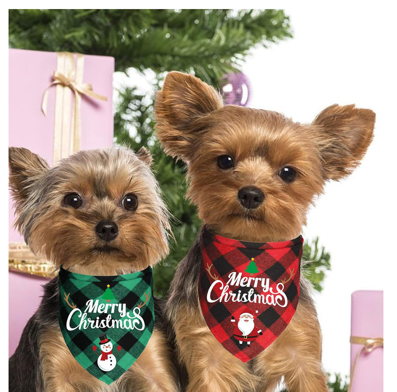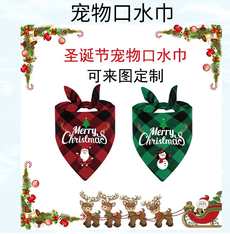Кросс-бордерный рождественский треугольный шарф для питомцев, клетчатый шарф для собак и кошек, печатный шарф с настраиваемыми узорами