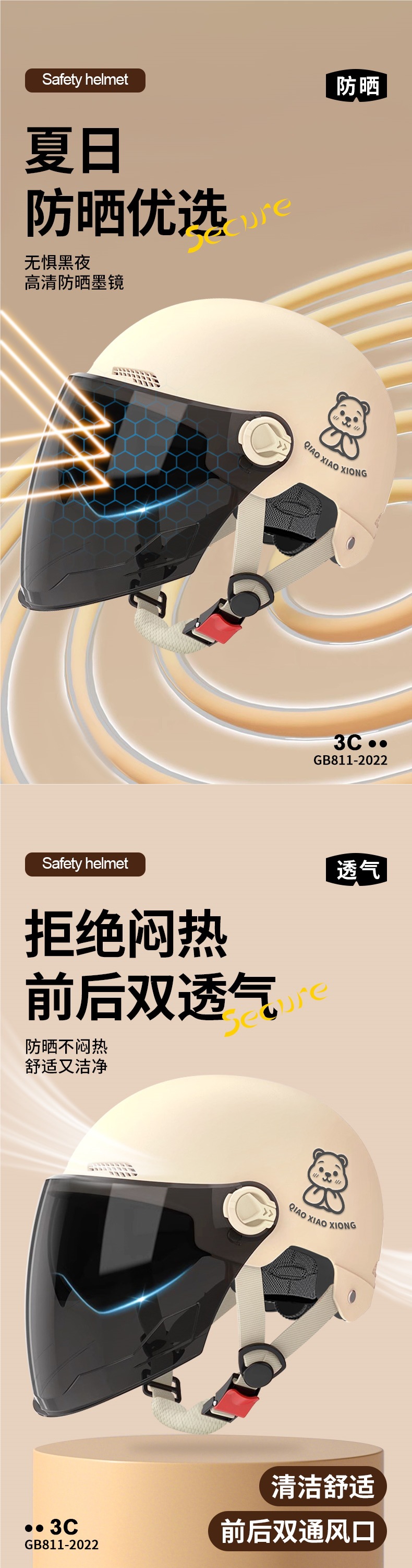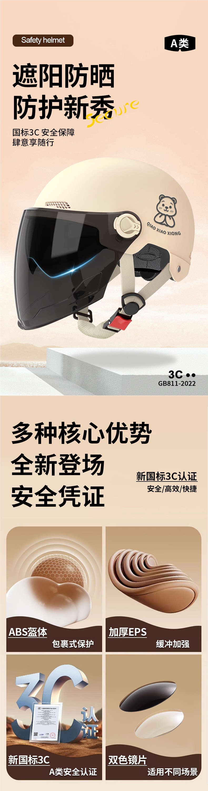 📦 | New national standard 3c khaki [enhanced sun protection double mirror + thickened protection] reflective stripe decal - bear design | One size fits all | ¥52.0 / ≈ 626 ₽ | 200 | 5962903264627 | |