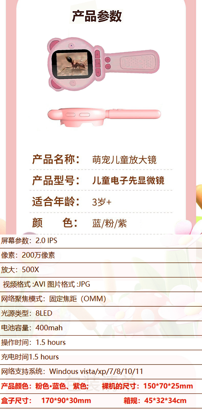 Цифровая лупа для детей ручная портативная с высоким разрешением и защитой глаз для наблюдения за насекомыми и растениями для учеников начальной школы
