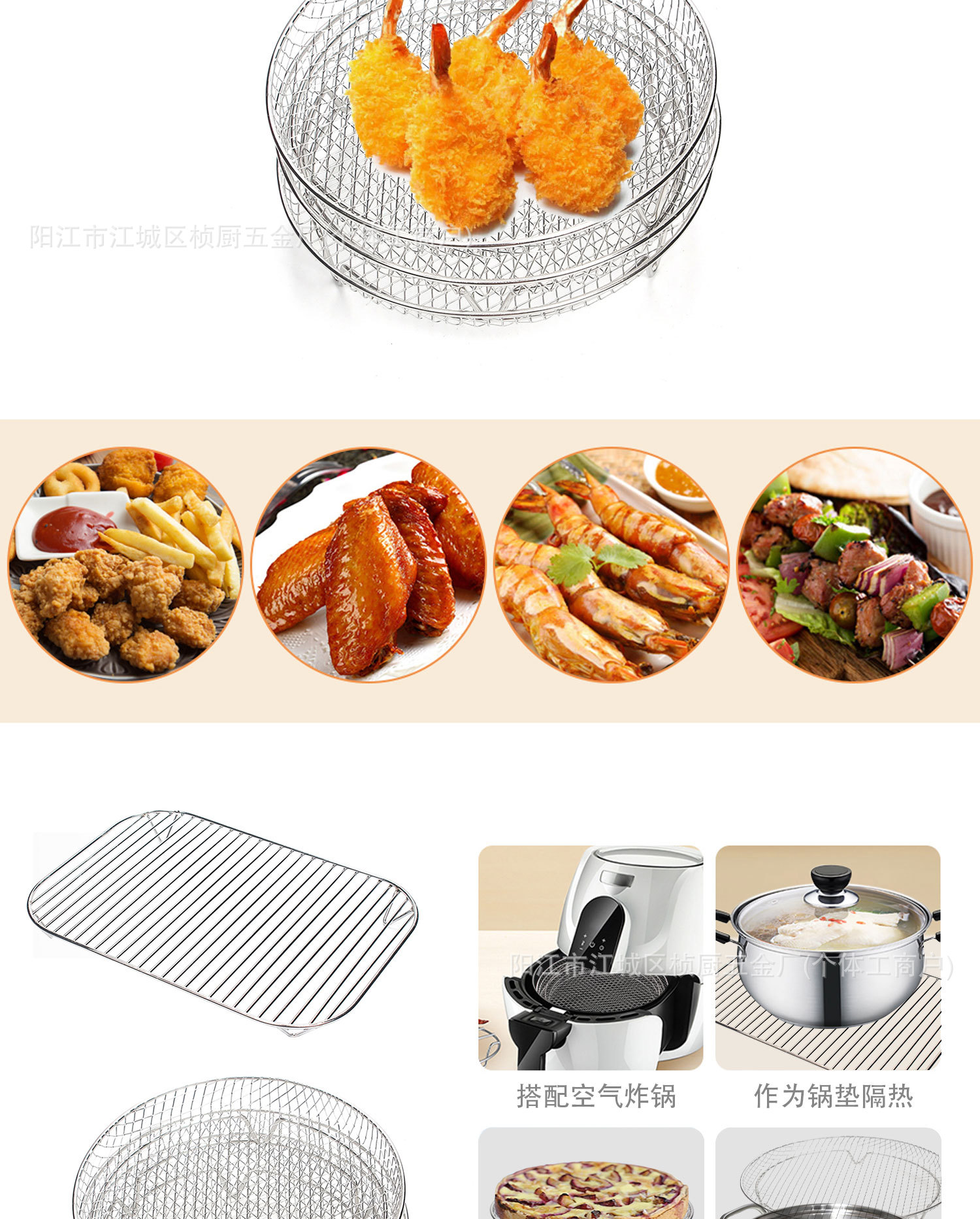 Оптовая 304 нержавеющая сталь квадратная и круглая сушка для фритюра, решетка для гриля, аксессуары для гриля