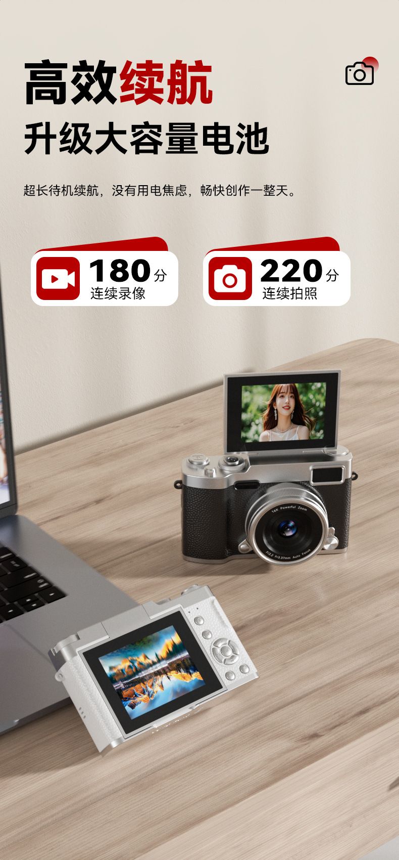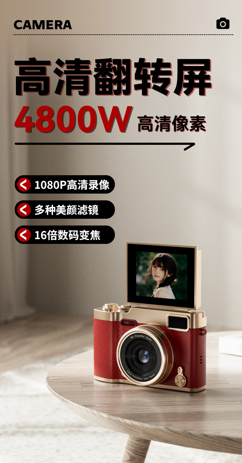 Кросс-бордерная новая модель камеры с поворотным экраном для студентов, высокое разрешение 48 миллионов пикселей, подходит для использования на кампусе, может снимать фото и видео
