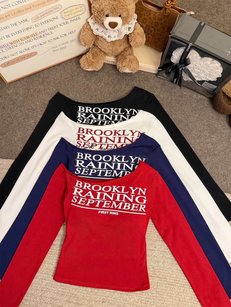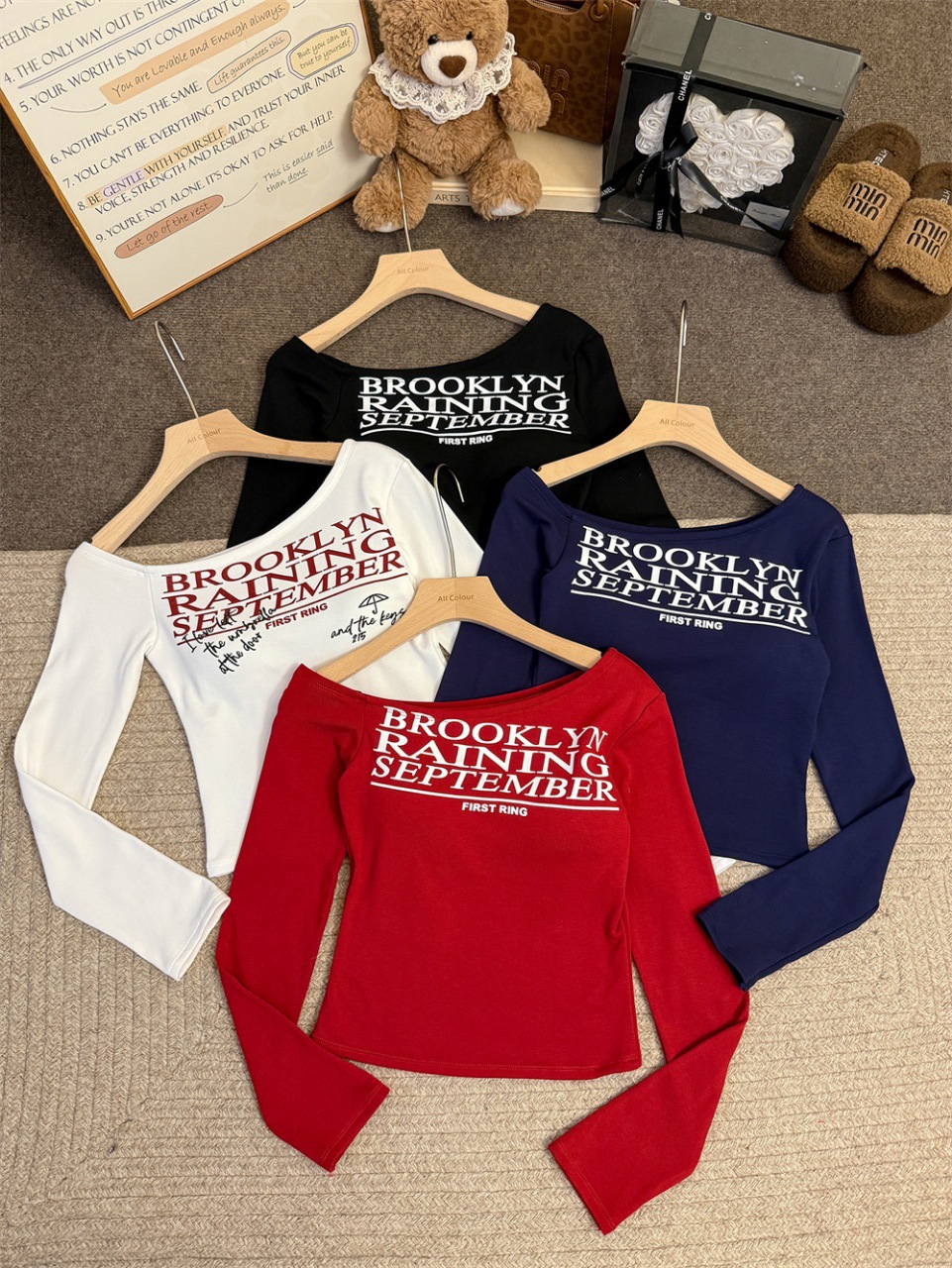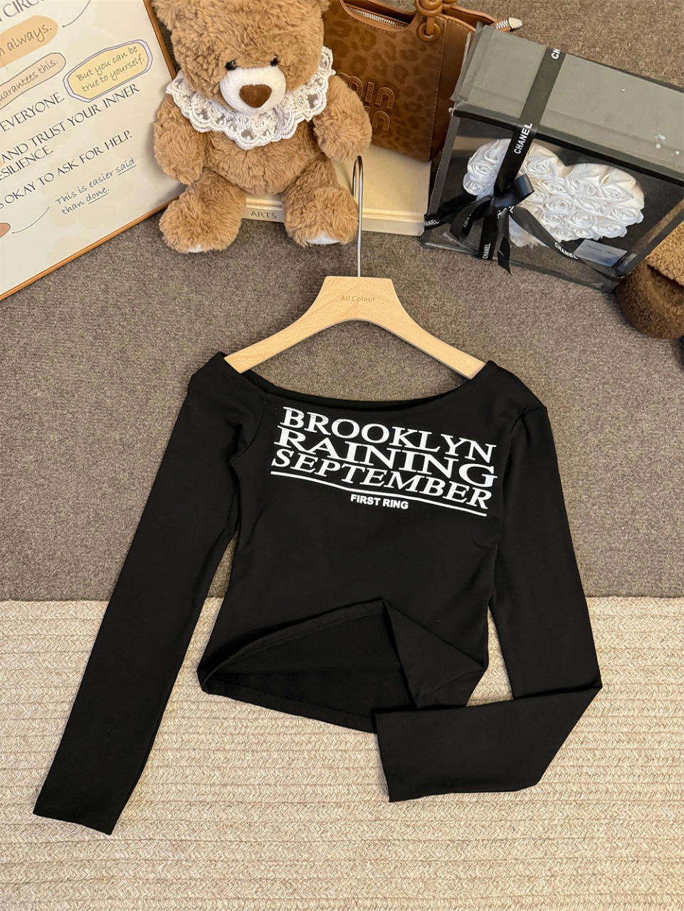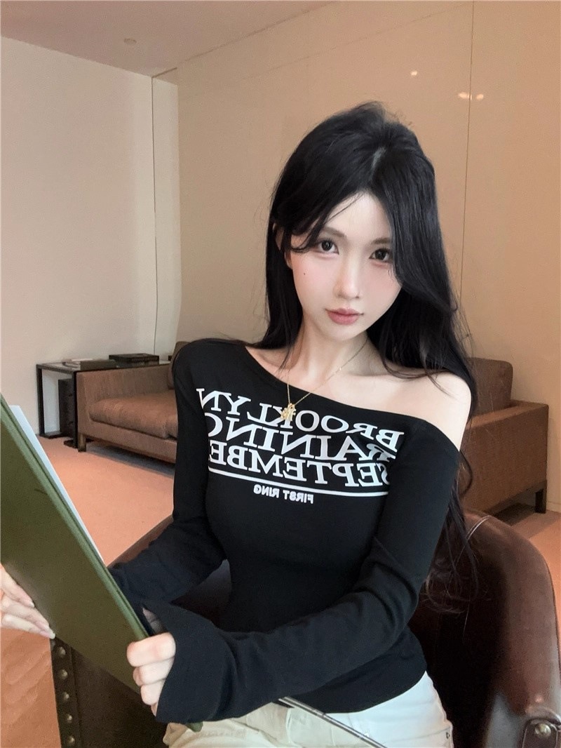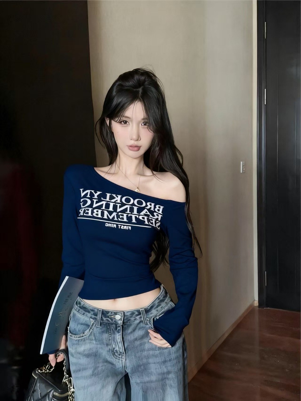 5175 # американская сексуальная футболка с открытыми плечами длинный рукав для женщин с облегающей внутренней посадкой и узким поясом и вставкой для груди