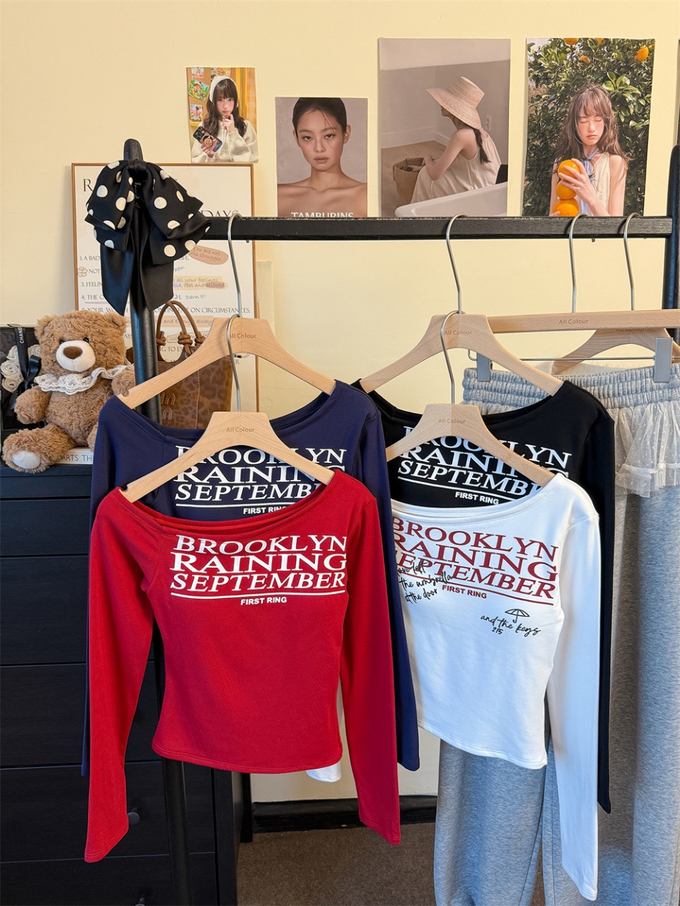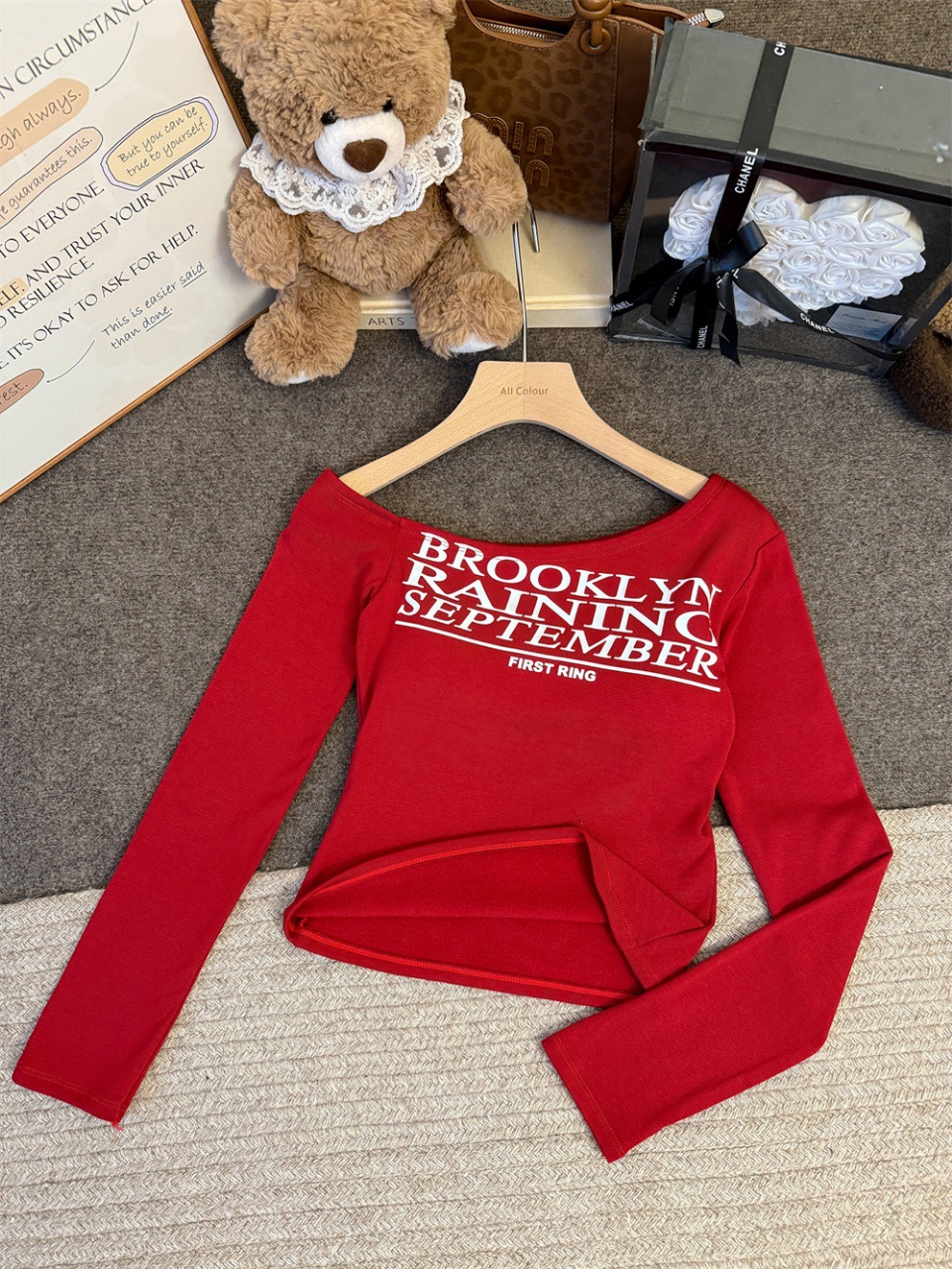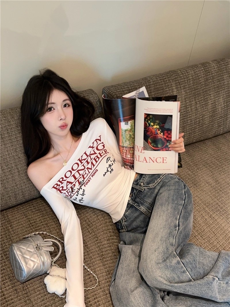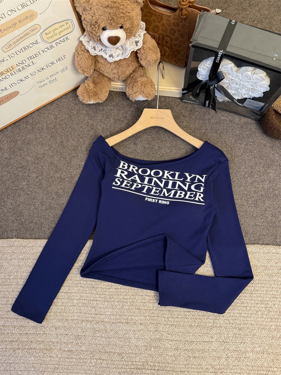 5175 # американская сексуальная футболка с открытыми плечами длинный рукав для женщин с облегающей внутренней посадкой и узким поясом и вставкой для груди