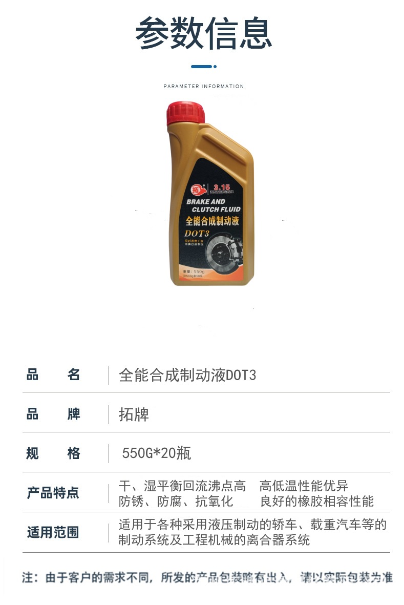 Масло для тормозов Tuopai Dot3 550g, синтетическая тормозная жидкость, оптовая продажа с завода