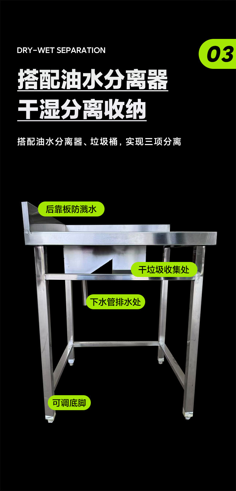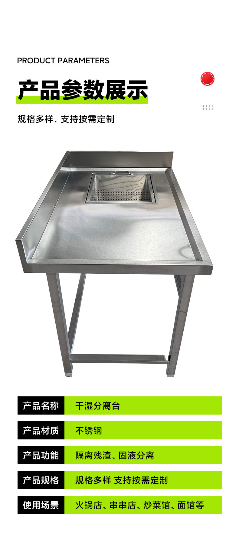 Стол для сбора остатков из нержавеющей стали с разделением на сухие и влажные остатки, операционный стол для ресторанного столового, поддерживает проверку на заводе, подписание и сотрудничество