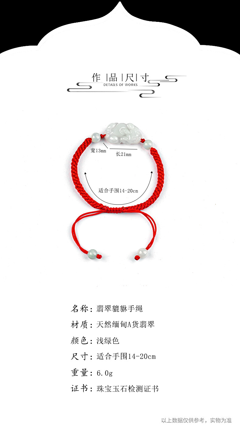 ![]() | Red rope | Jade pixiu bracelet (with certificate) sl41 | 1шт: ¥11.00, 50шт: ¥10.50, 100шт: ¥10.00 | 119 | 5956715424519 | |