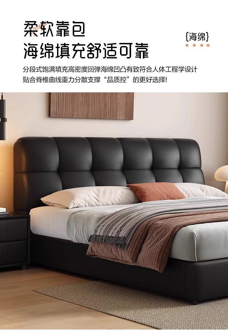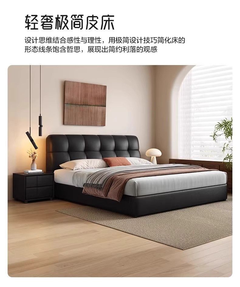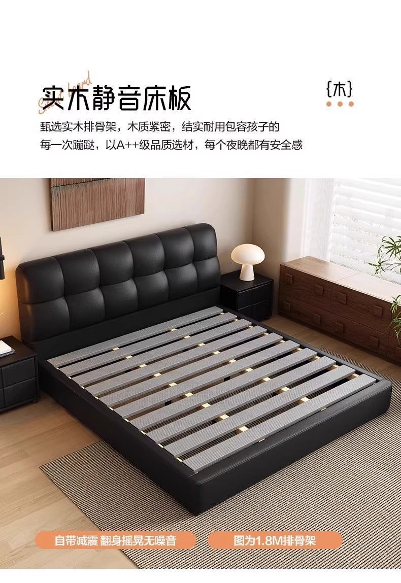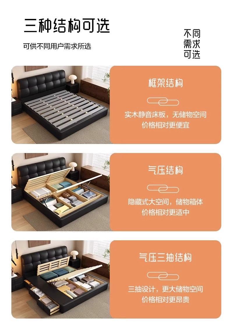 Современная легкая роскошная простая двуспальная кровать из натуральной кожи 1.8м для малогабаритной квартиры с хранением для свадьбы