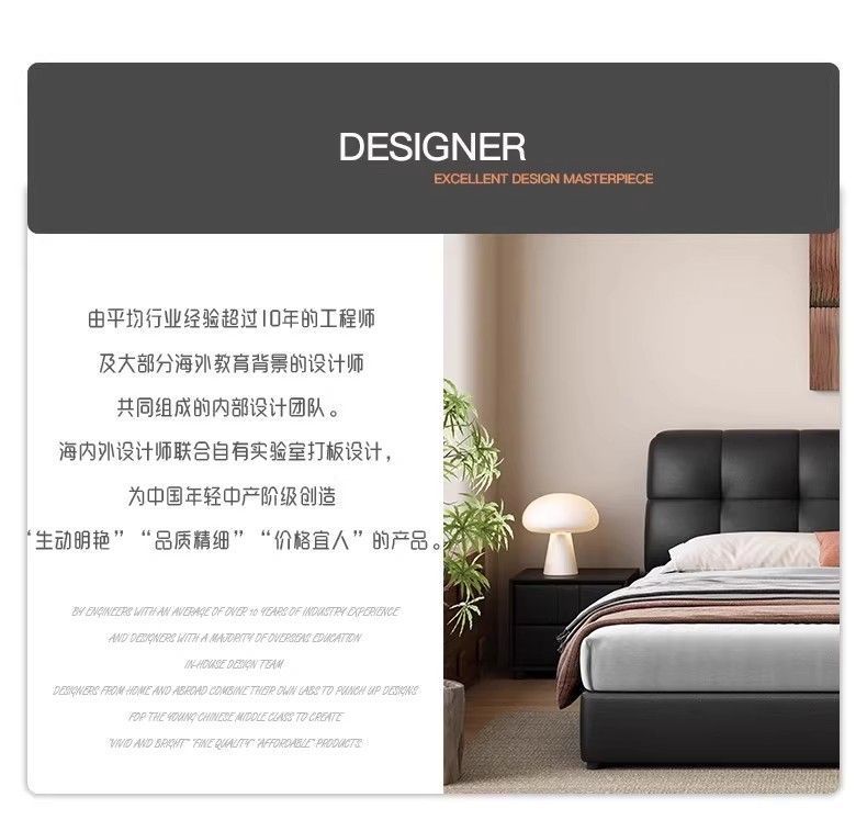 ![]() | Ins style leather bed + 1 bedside table | 1800mm*2000mm-frame structure | ¥604.8 / ≈ 7 295 ₽ | 851 | 5957991073319 | |