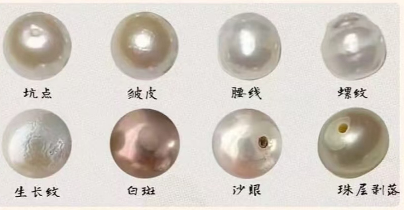 关于瑕疵:人无完人,珠虽有完珠,但确实是凤毛鳞角,更多的是有瑕疵的,就像天然宝石有包体一样,这是他们天然生长的痕迹。国家标准中,对 “无暇”’的定义是:肉眼观察表面光滑细腻,极难看到瑕疵。