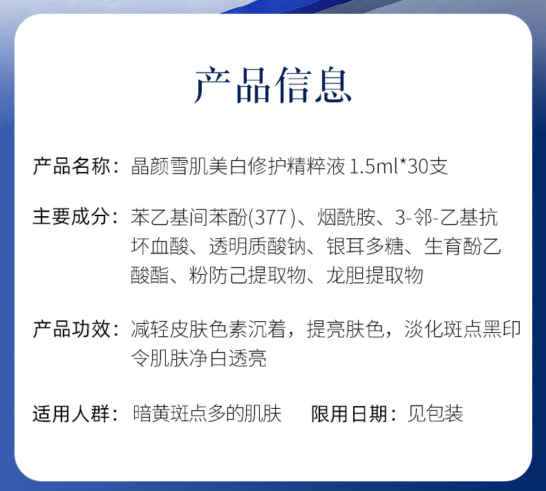 Специальное название косметического продукта Crystal snow skin whitening and repairing essence