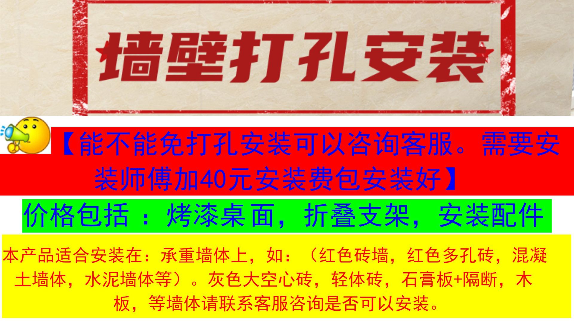 ![]() | 80*40 piano paint white wall drilling installation | Default item | ¥137.84 / ≈ 1 660 ₽ | 200 | 6125418695101 | |