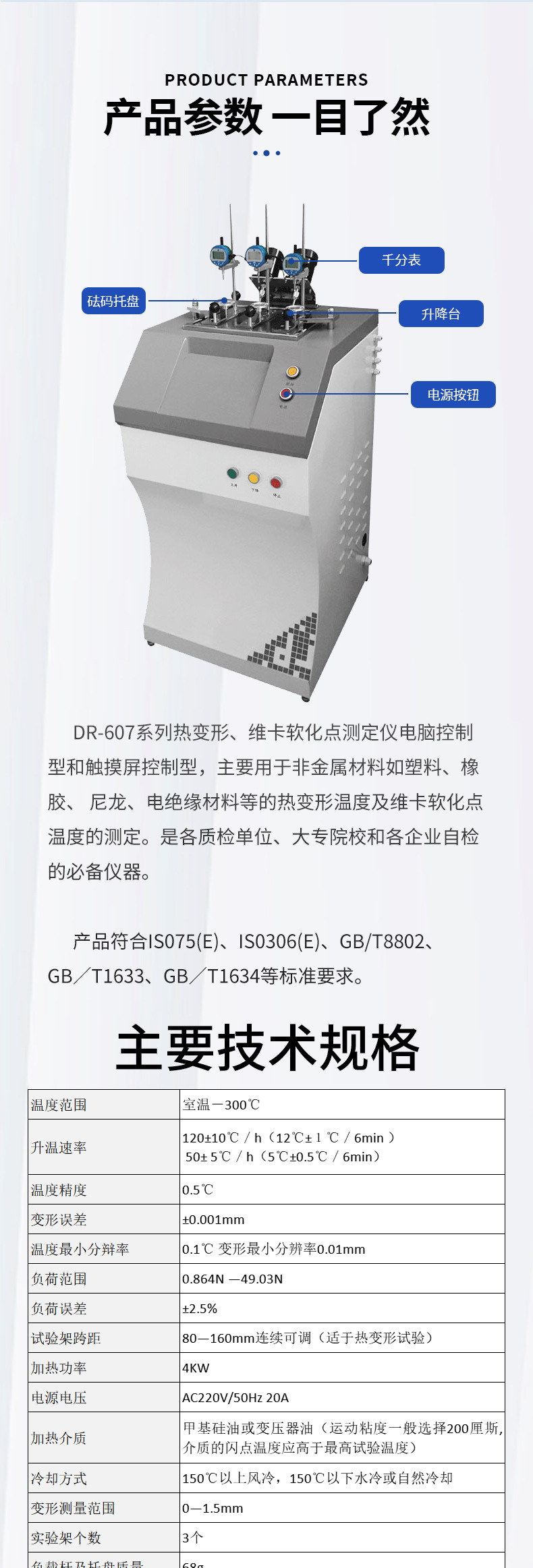 Область применения Determination of heat distortion temperature and vicat softening point temperature of non-metallic materials such as plastic, rubber, nylon, electrical insulating materials, etc