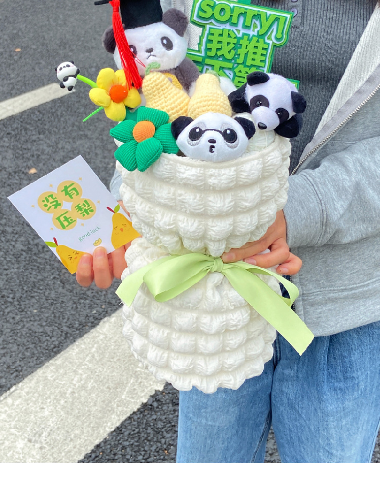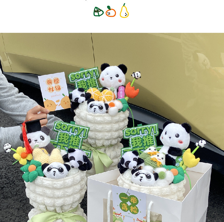 Плюшевая игрушка Панда с креативным плетением фруктов для букета благословения на выпускной и вступительные экзамены