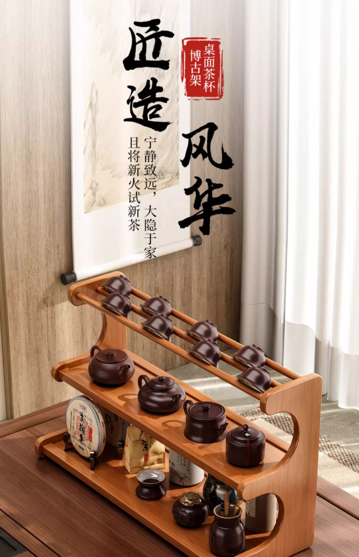 Стеллаж для хранения чайного набора, настольный, в древнем стиле, для китайского чая