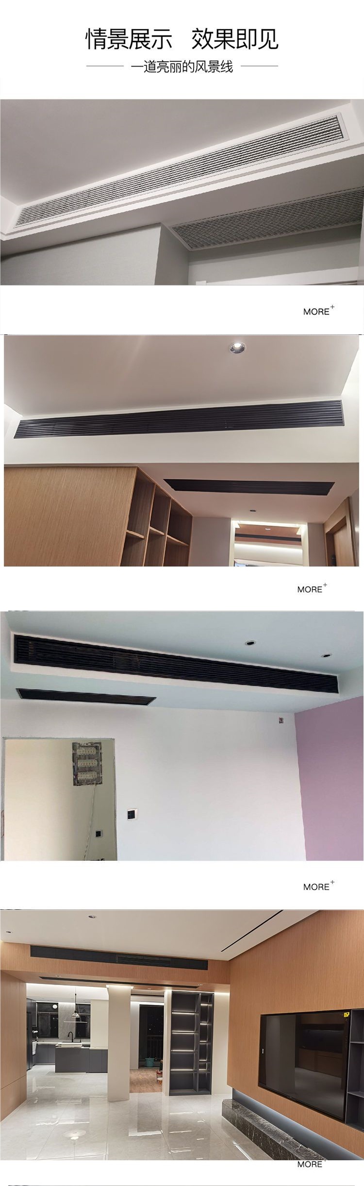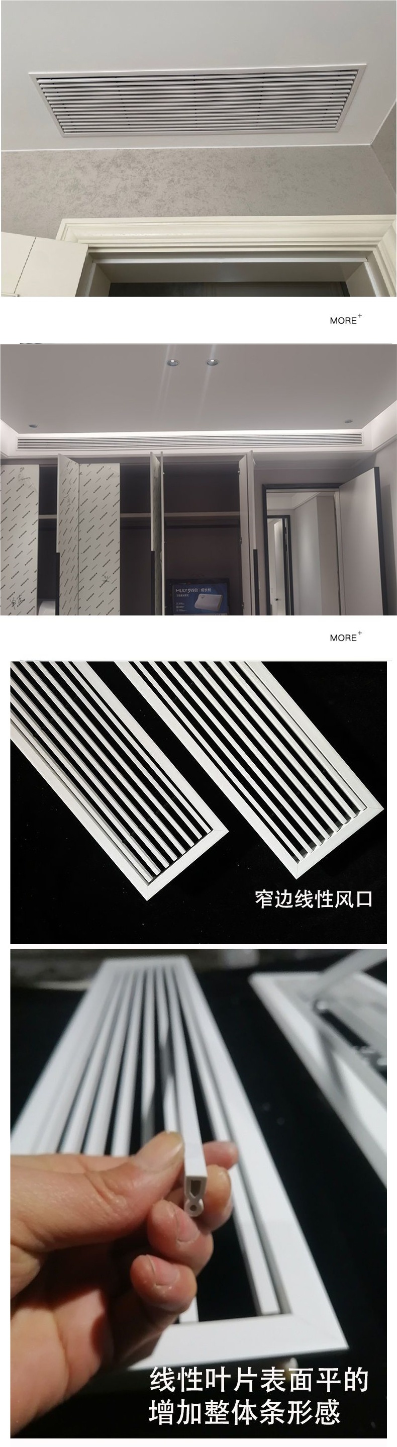 Решетка вентиляции центрального кондиционирования, очень узкая и длинная, безрамочная, минималистичный встроенный линейный выход воздуха