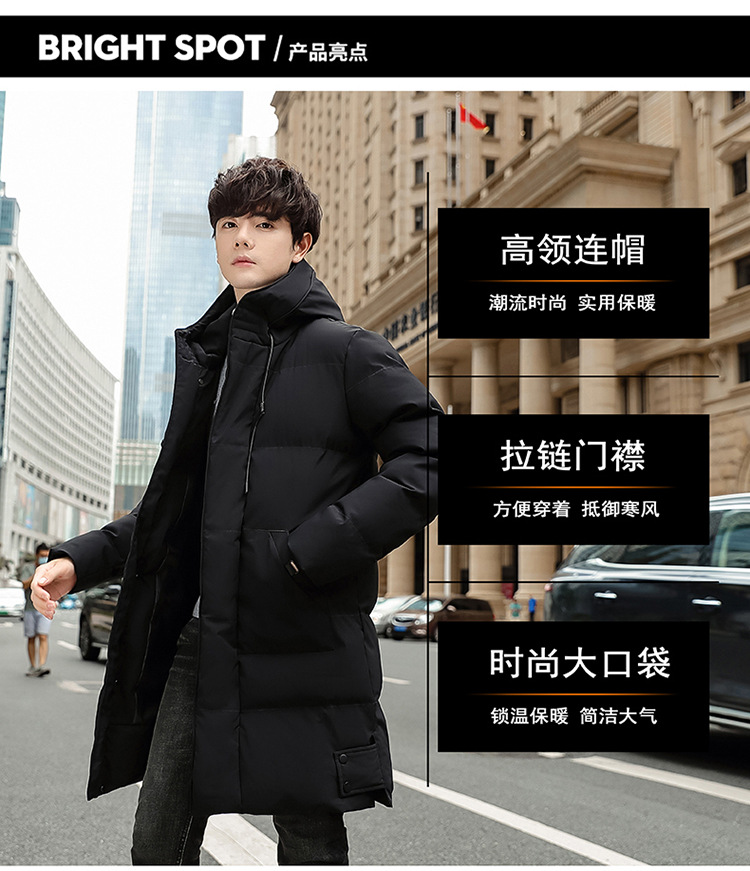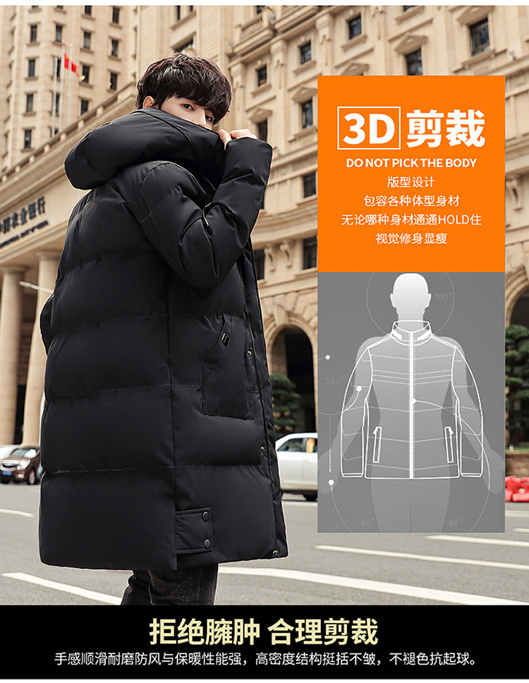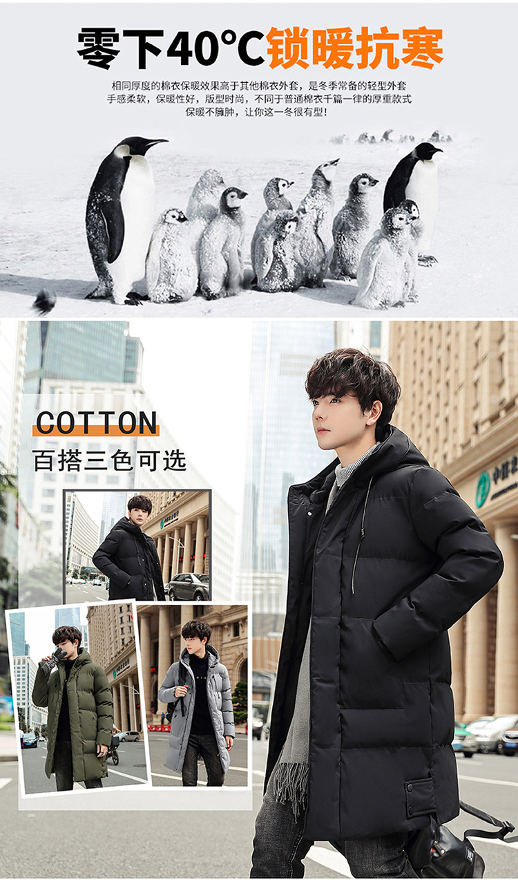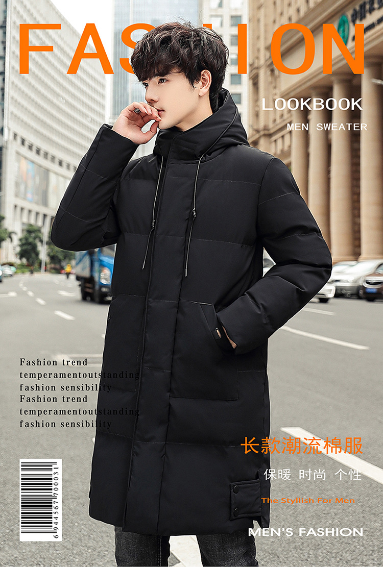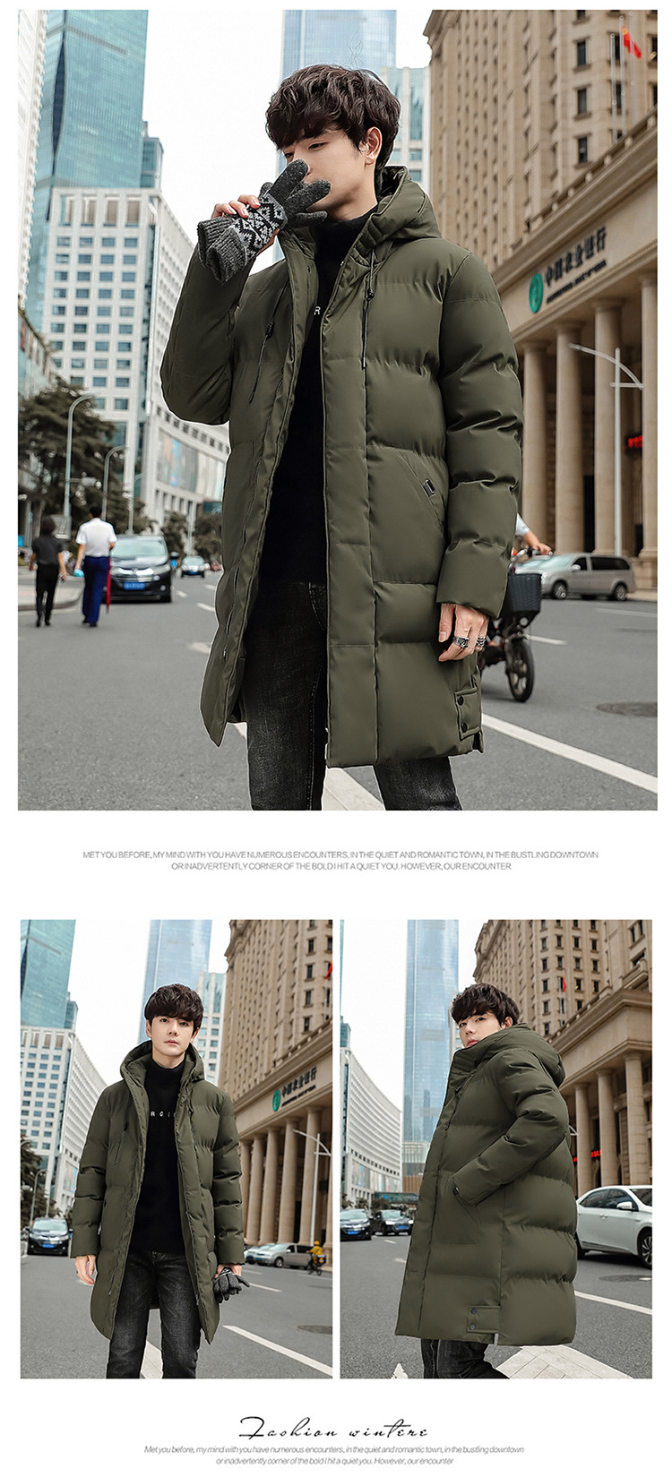 Полудлинная зимняя куртка из хлопка для мужчин, утепленная, модная, универсальная, с капюшоном, большого размера