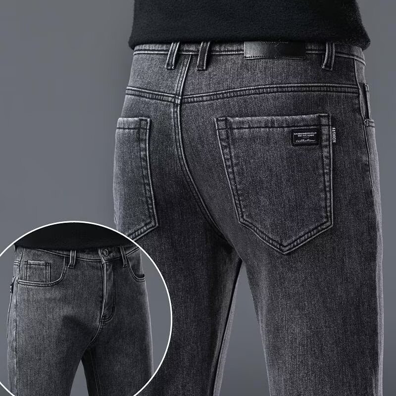 Осенние и зимние велюровые джинсы, стрейчевые, узкие прямые, новые рабочие мужские брюки, износостойкие теплые повседневные брюки