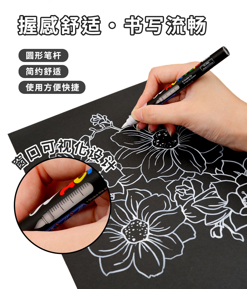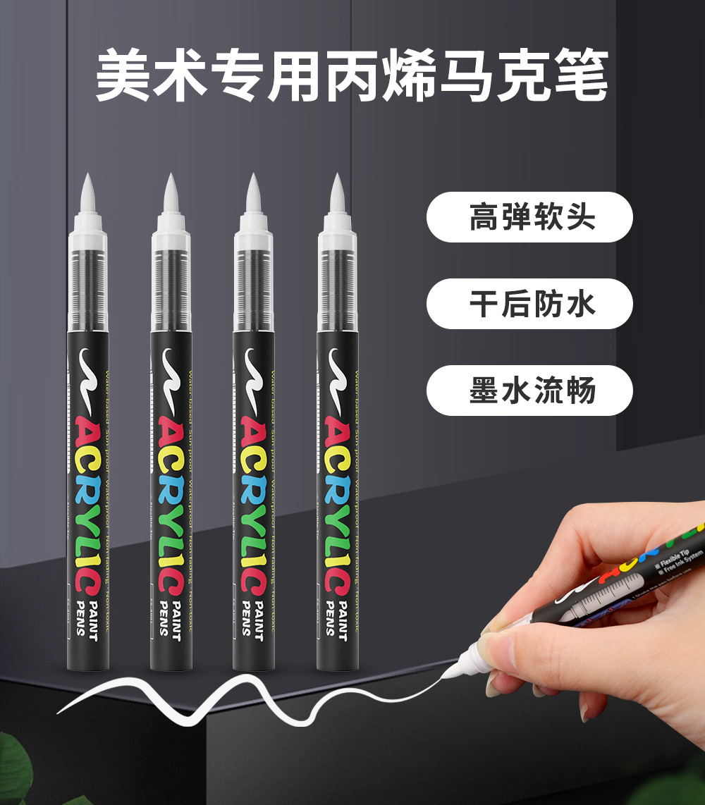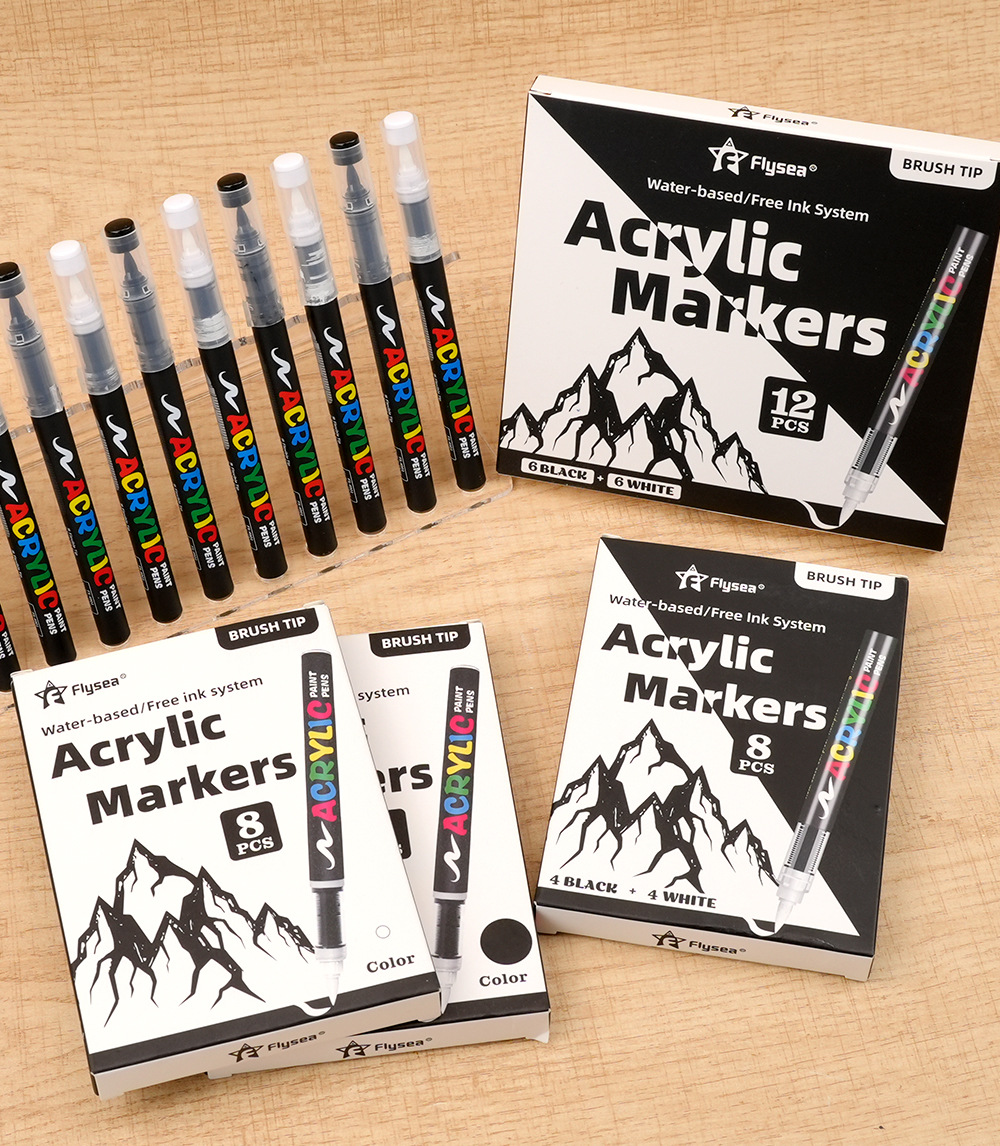 Импортный черно-белый акриловый маркер с мягким наконечником для ведения дневников, глянцевого искусства, рисования на черной бумаге, DIY альбомов, на водной основе