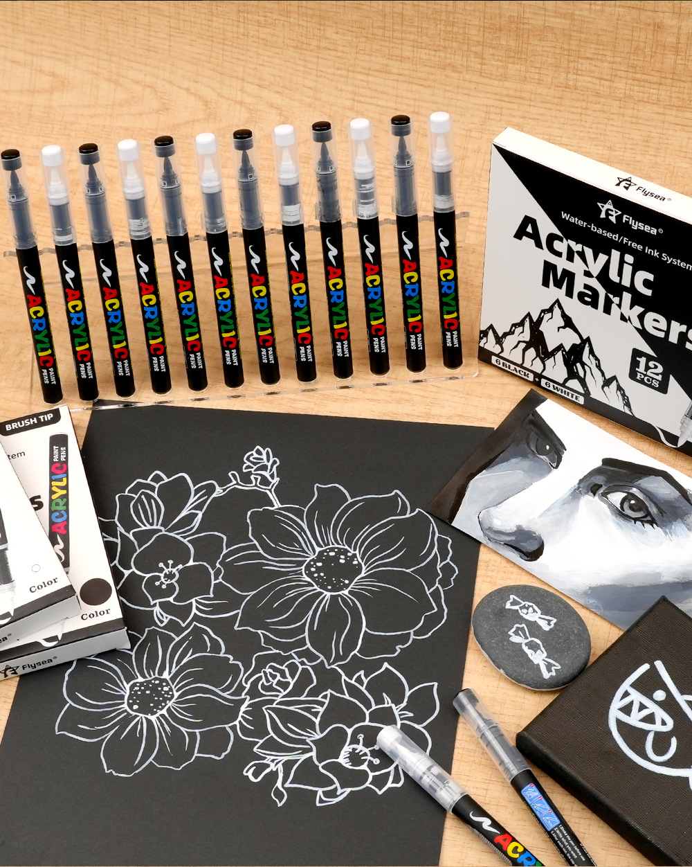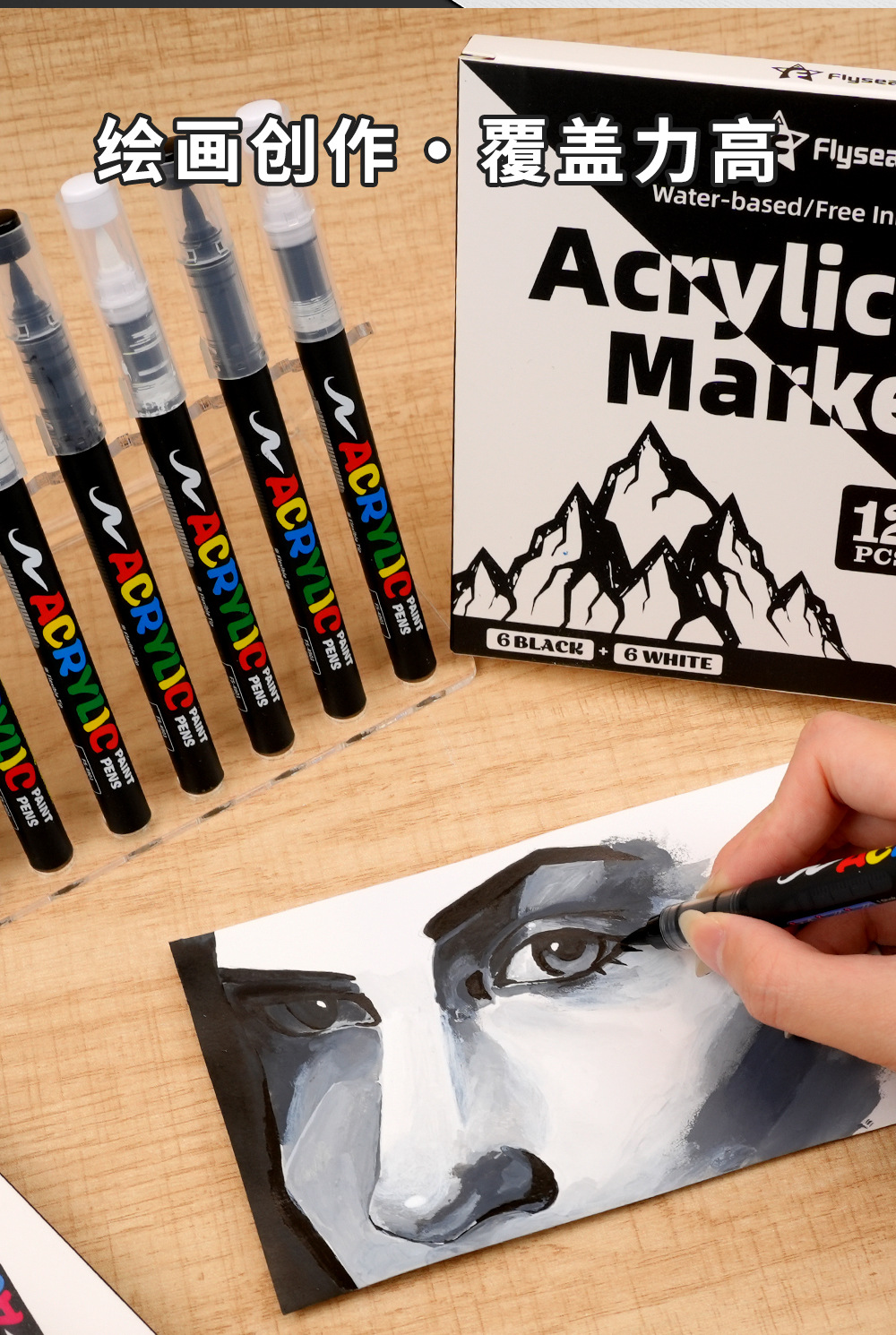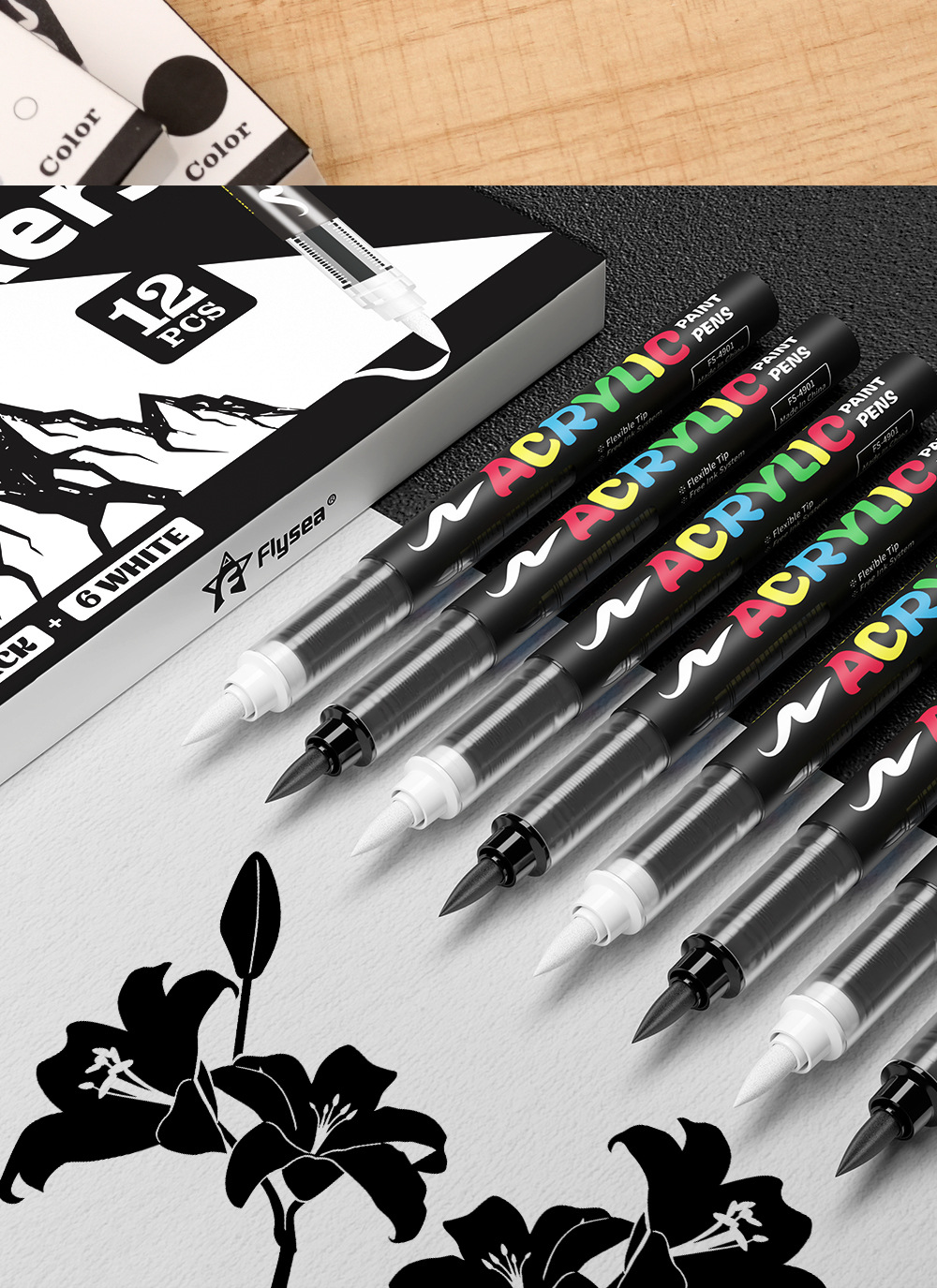 Импортный черно-белый акриловый маркер с мягким наконечником для ведения дневников, глянцевого искусства, рисования на черной бумаге, DIY альбомов, на водной основе