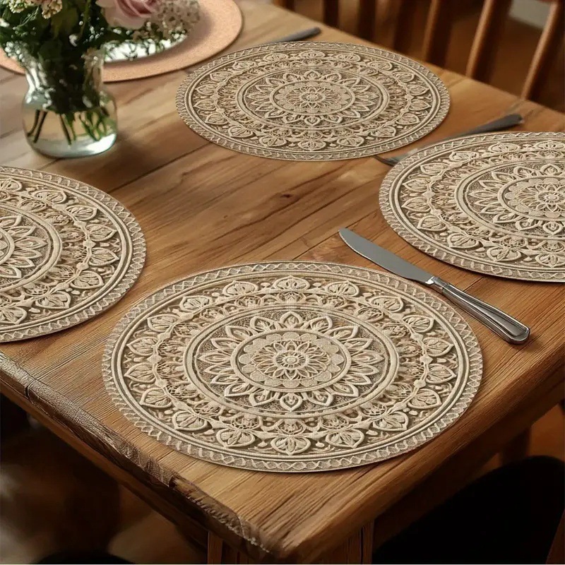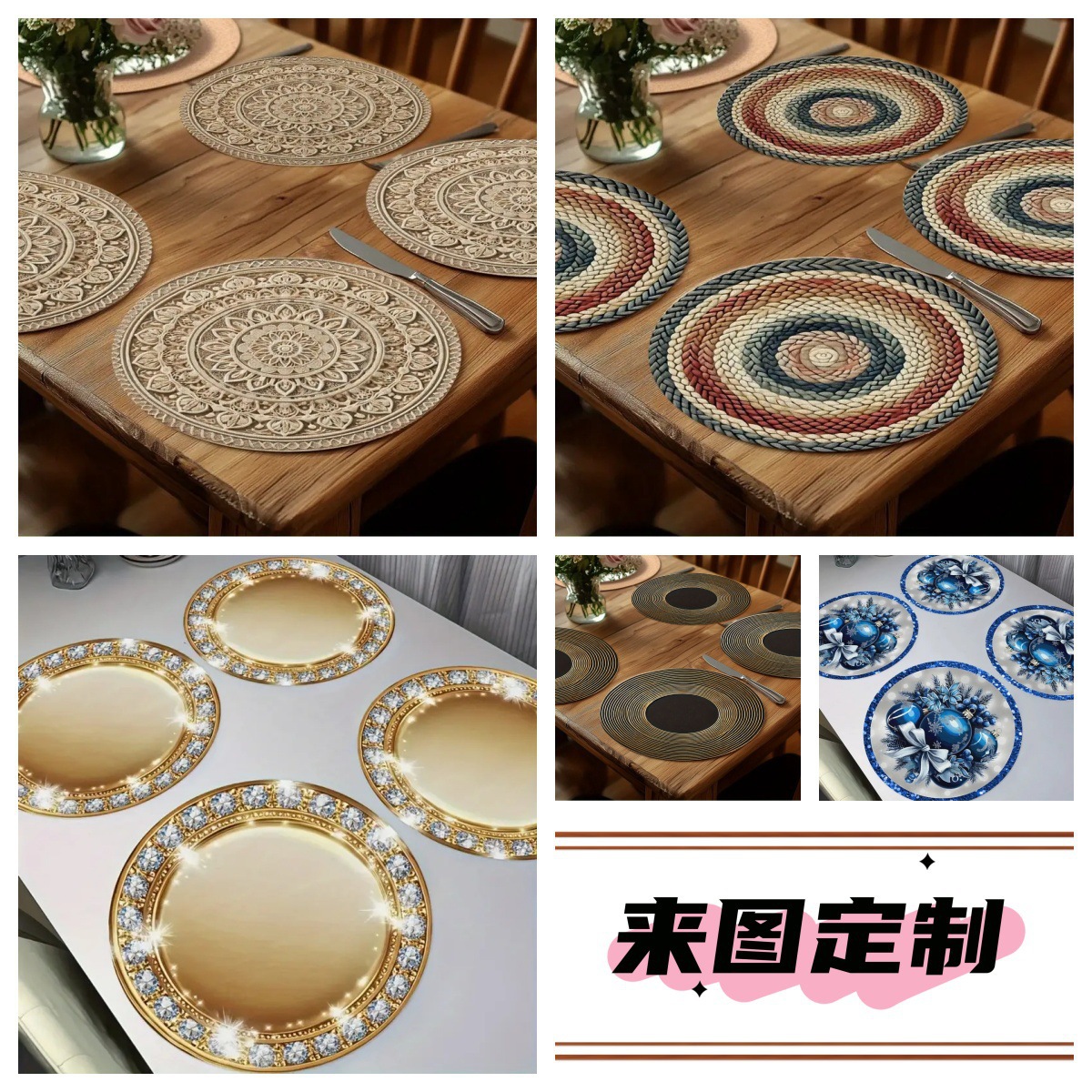 Хит продаж Temu, круглые подставки с 2D печатью в алмазном узоре, льняные подставки в богемном стиле, индивидуальные с изображениями