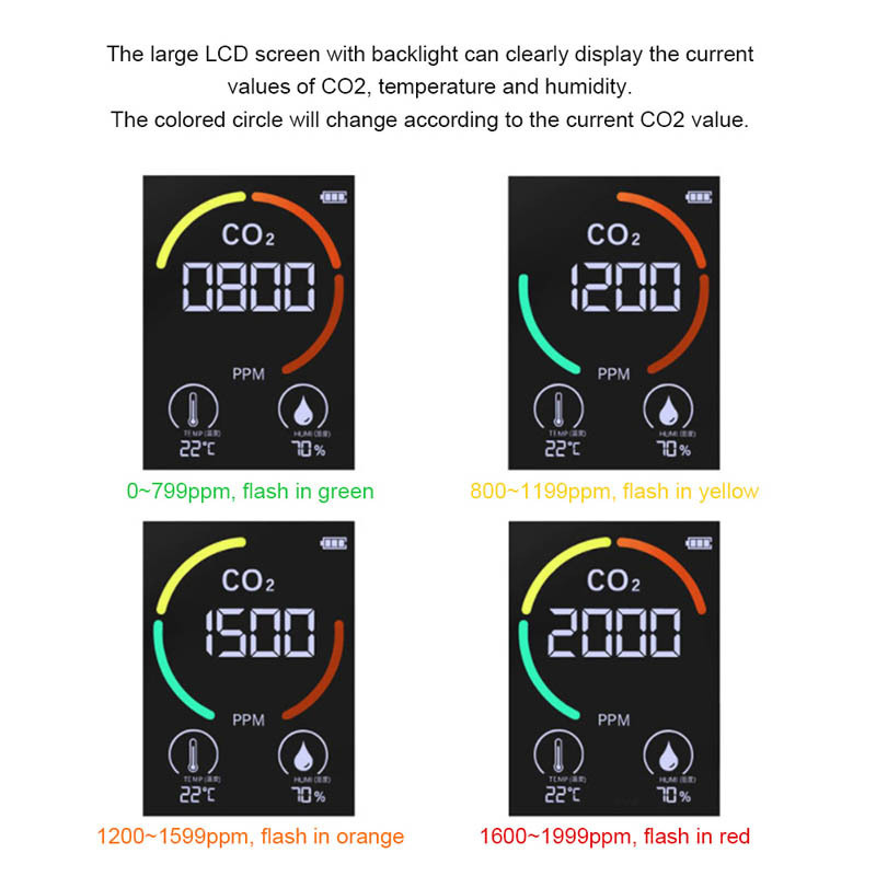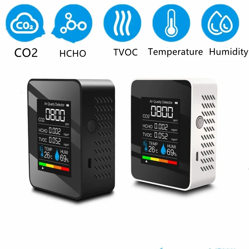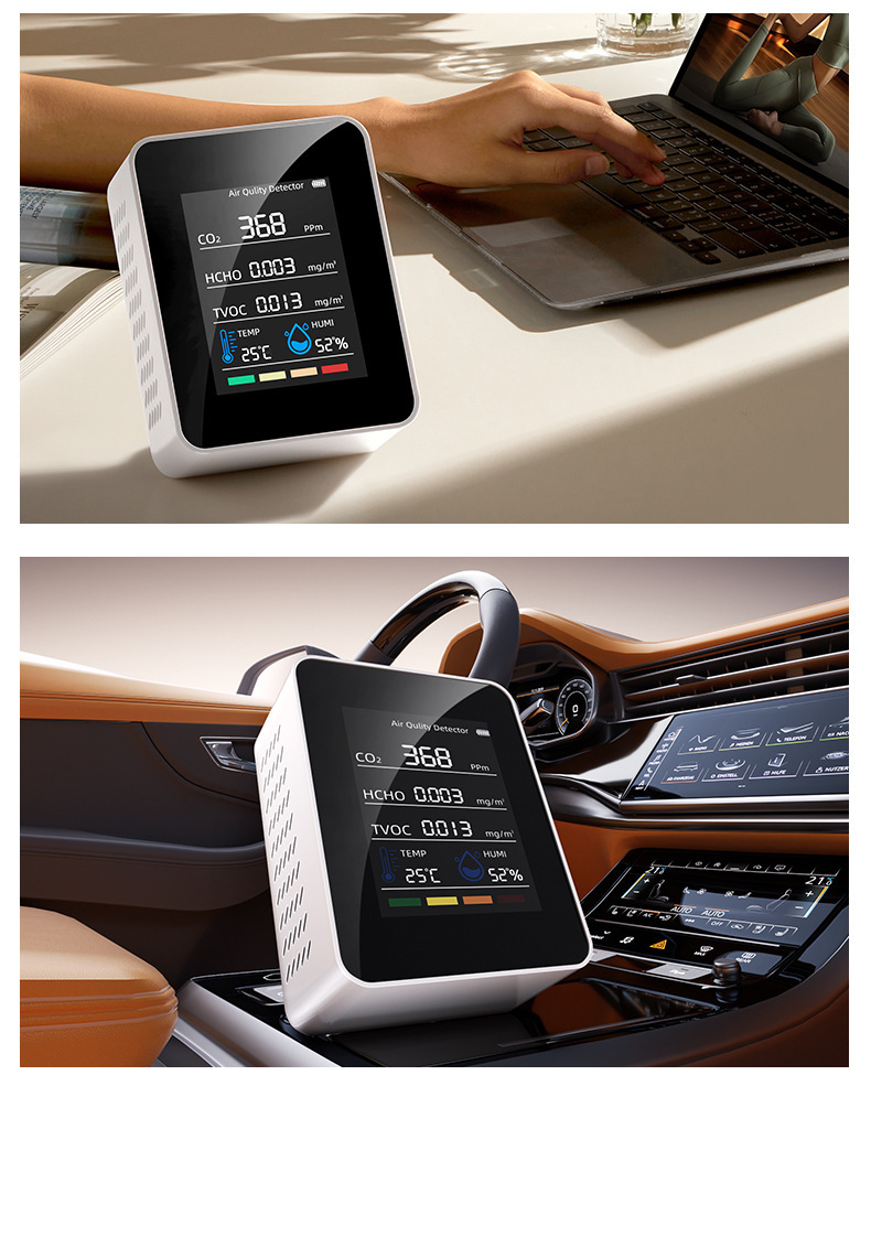 5-в-1 детектор углекислого газа, формальдегида, Tvoc, Pm2.5, температуры и влажности, портативное устройство для обнаружения формальдегида