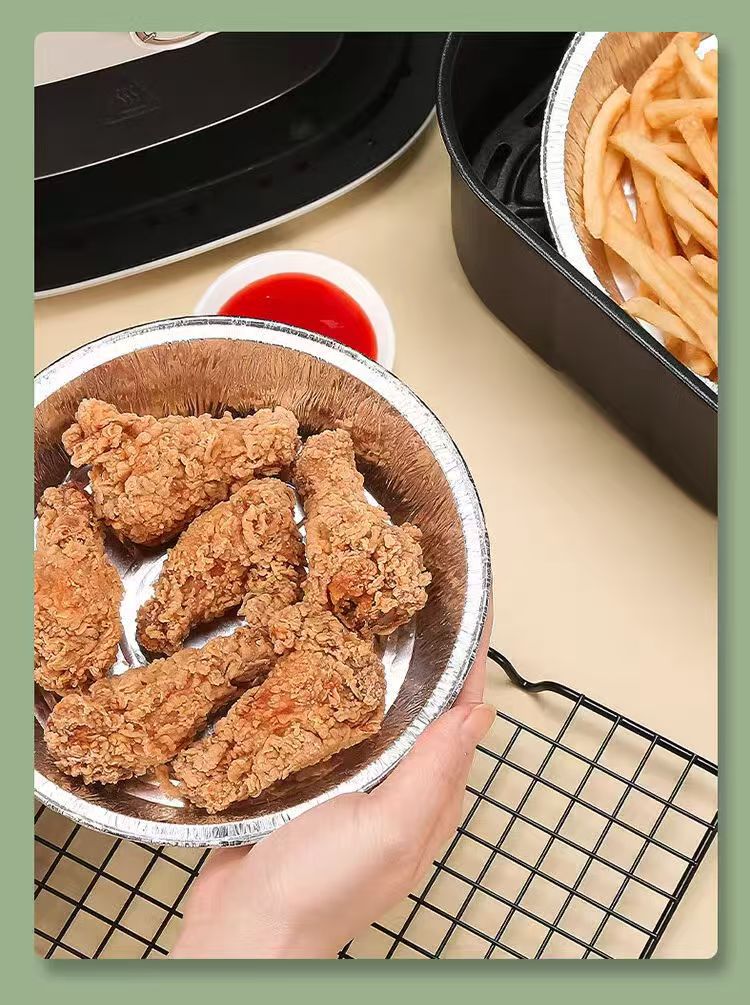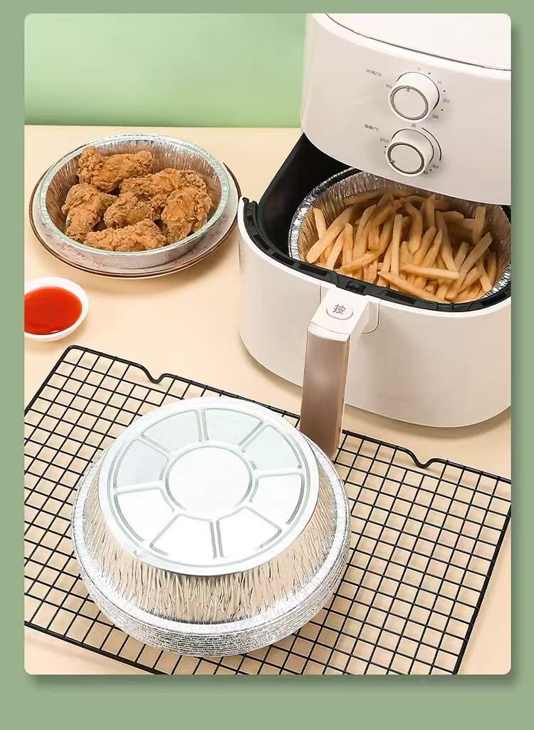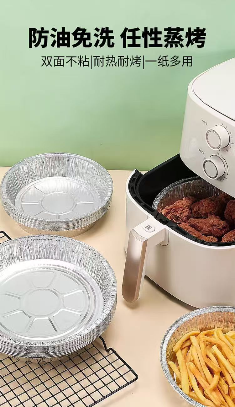 Оптовая фольгированная подложка для фритюрницы, круглая, утолщенная, одноразовая алюминиевая чаша, для запекания в духовке, барбекю, домашняя фольга