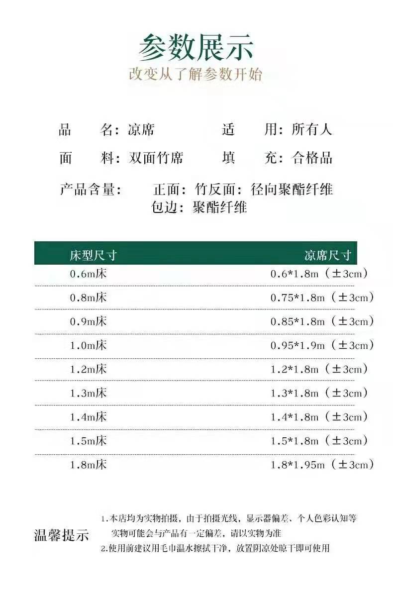 ![]() | Original bamboo color first layer bamboo green mat + pillowcase | Width 130cm *length 190cm | ¥52.3 / ≈ 632 ₽ | 1000 | 6123837747271 | |